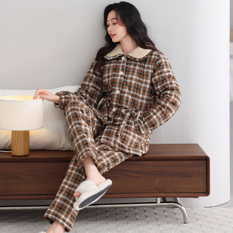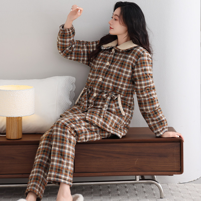 猫人睡衣女冬季纯棉三层加厚夹棉袄冬天加绒宽松超厚家居服可外穿
