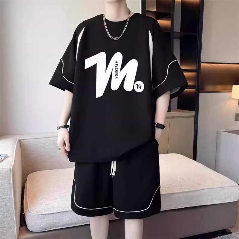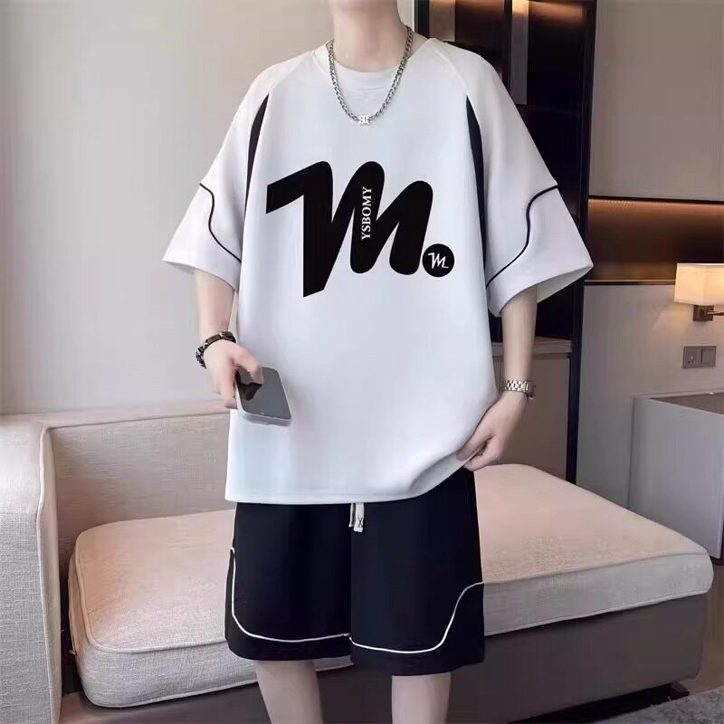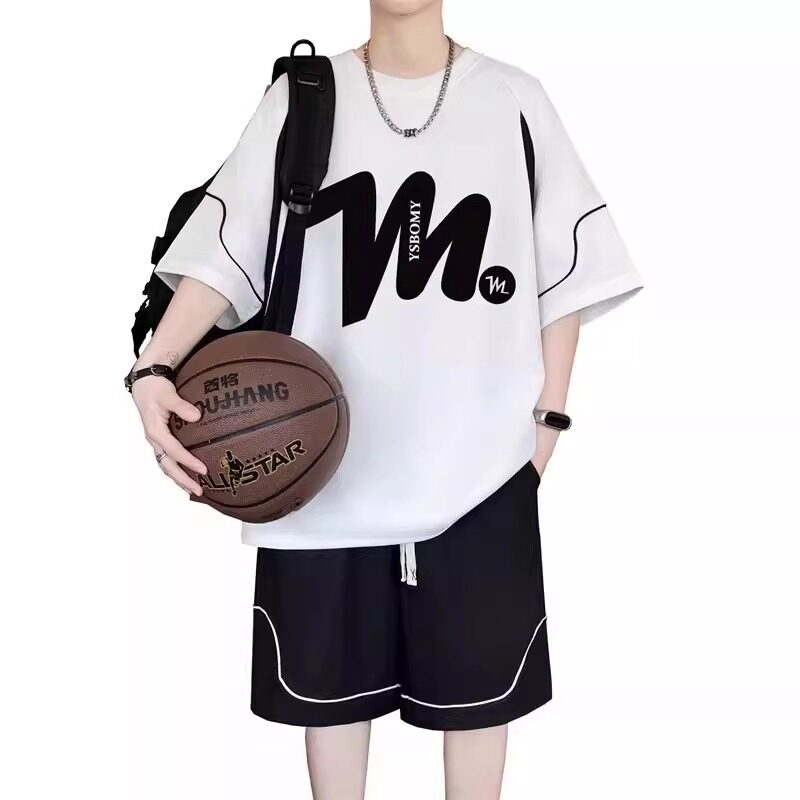 初高中学生夏季新款冰丝短袖t恤男孩潮流帅气青少年短裤运动套装