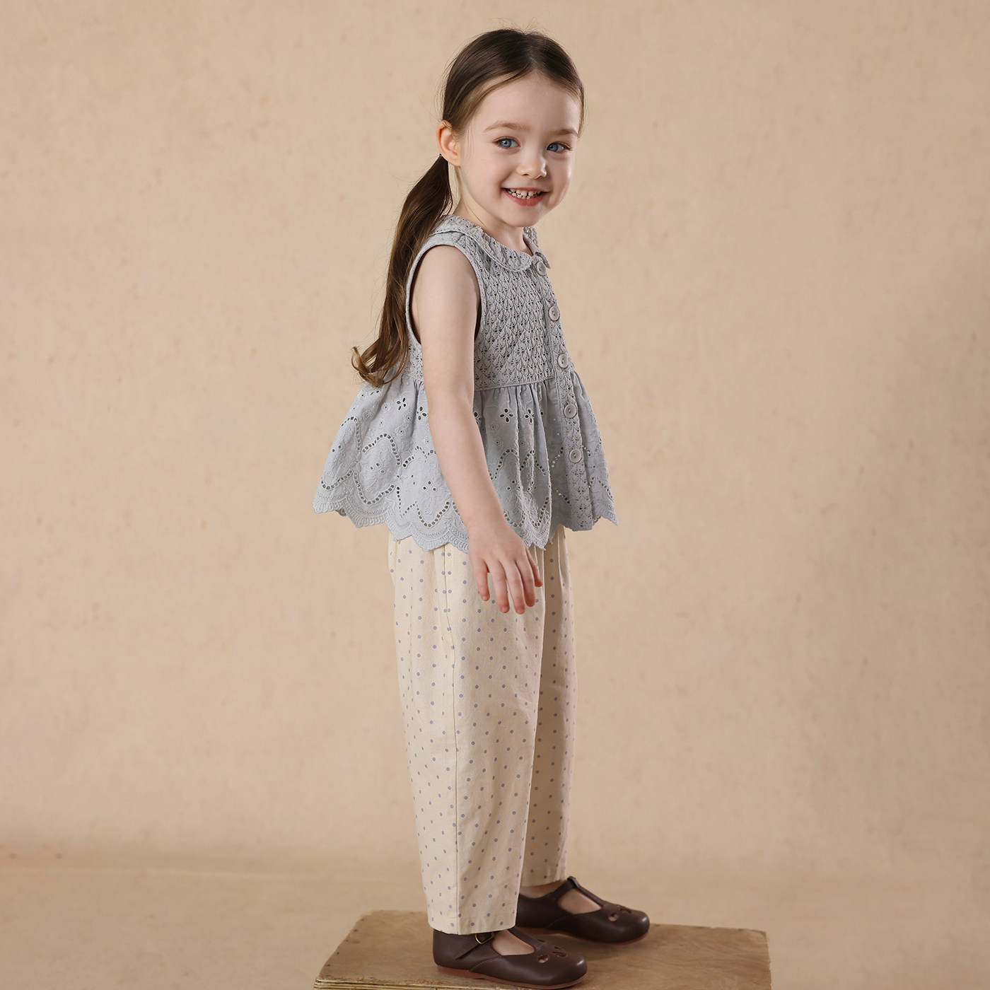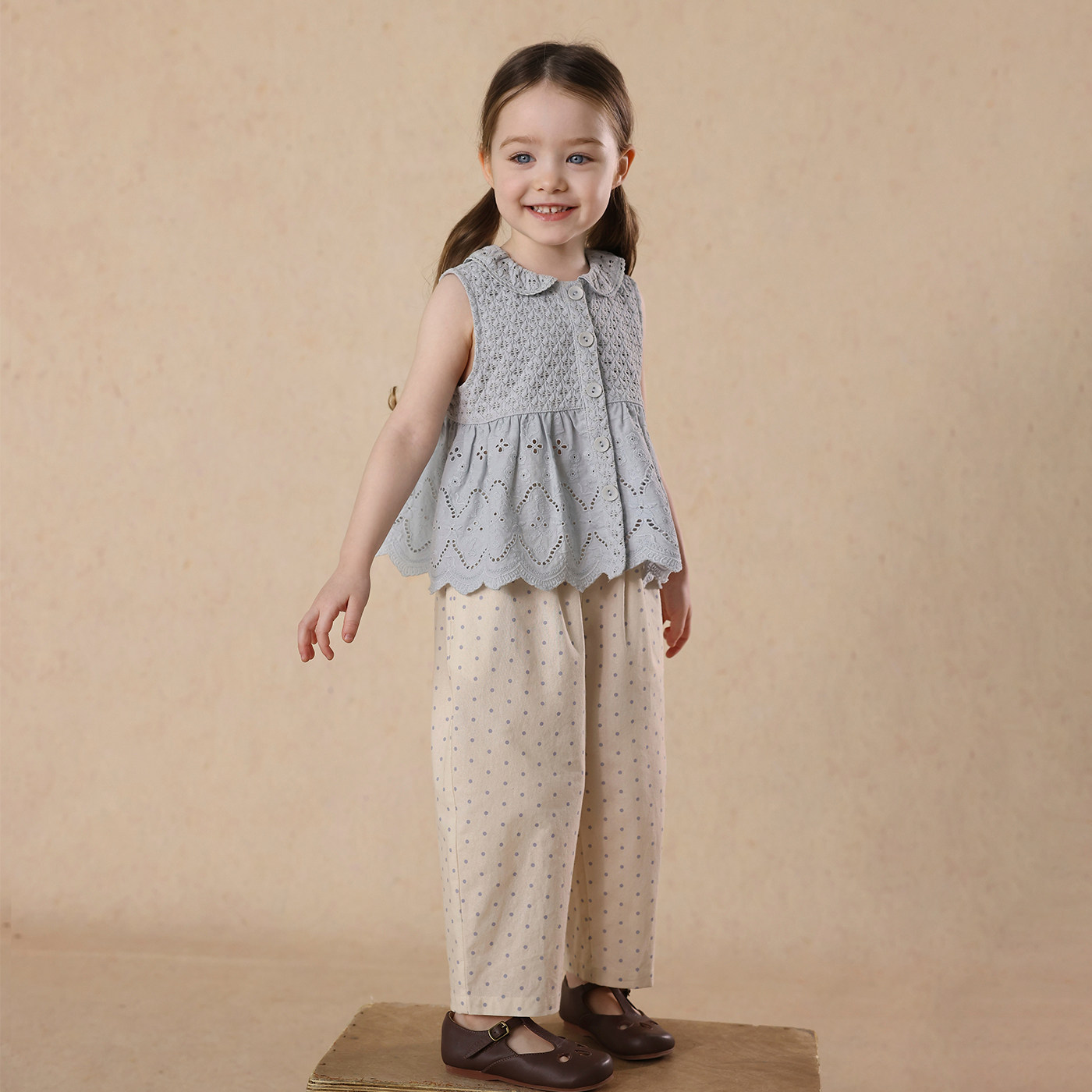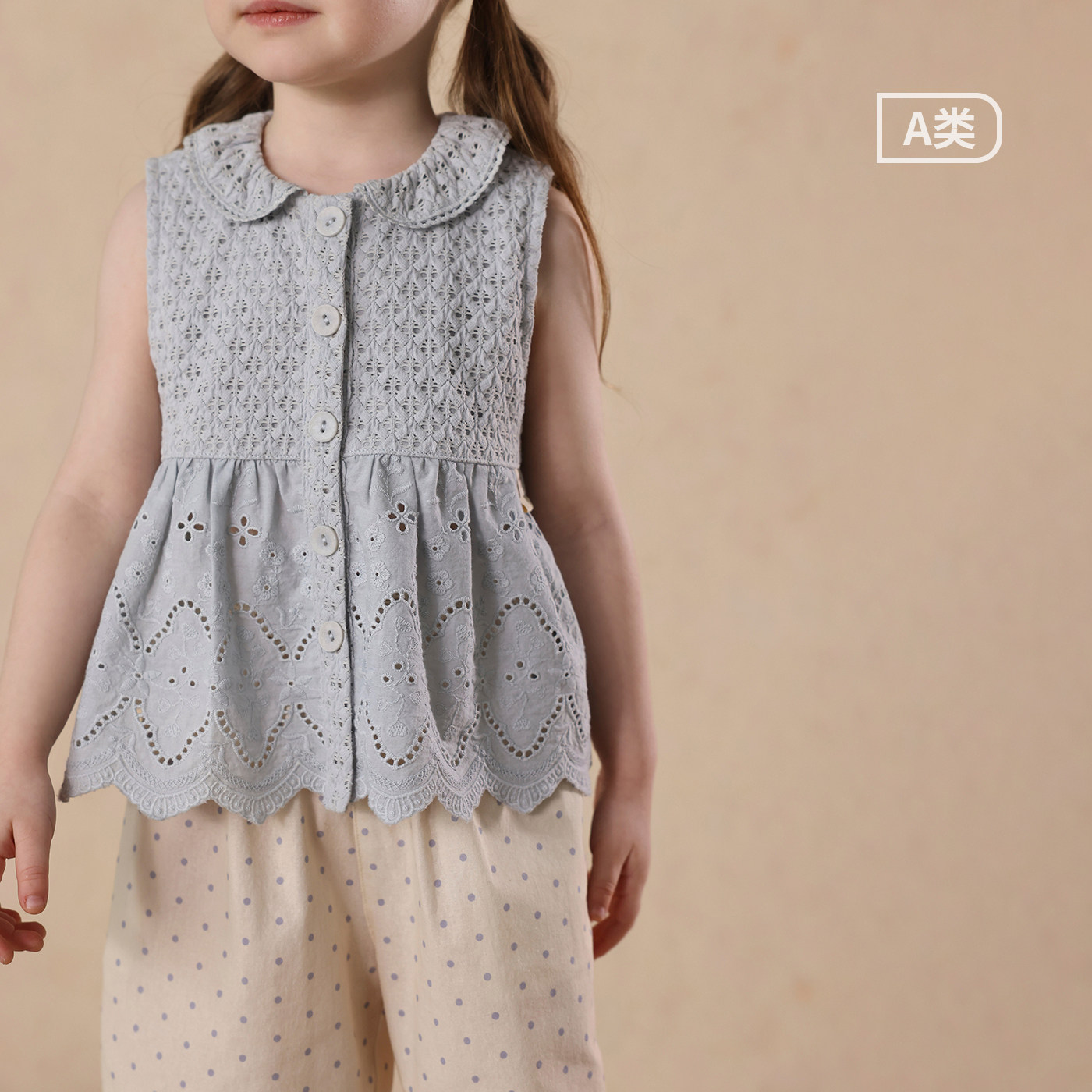 女童夏季镂空花边背心波点9分休闲裤套装 允儿妈宝宝防蚊裤娃娃衫