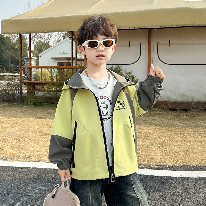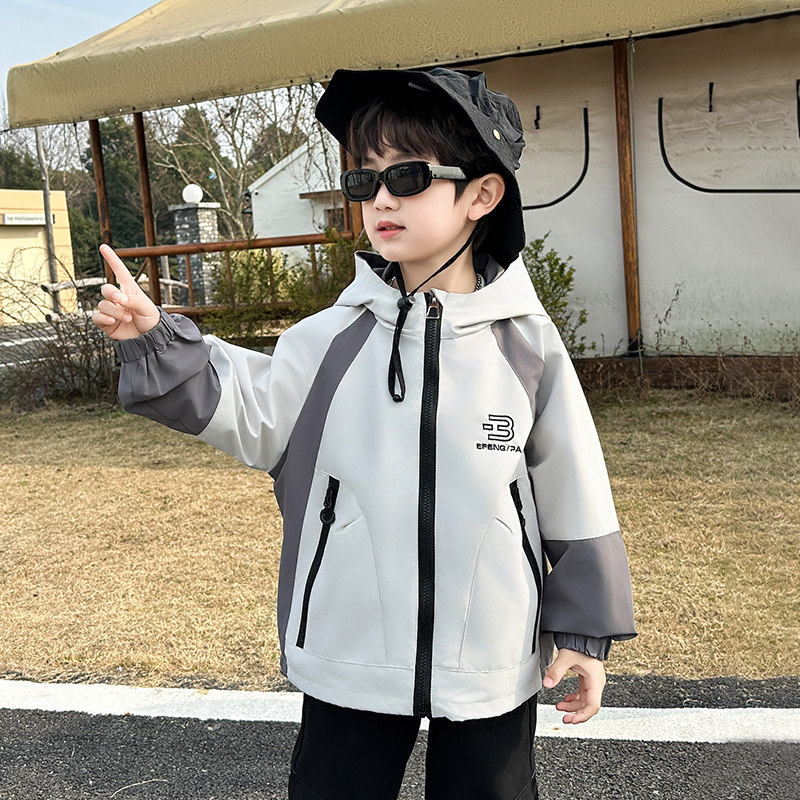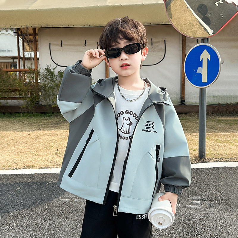 男童外套春秋款2026新款洋气中大儿童时髦秋季冲锋衣夹克薄款上衣
