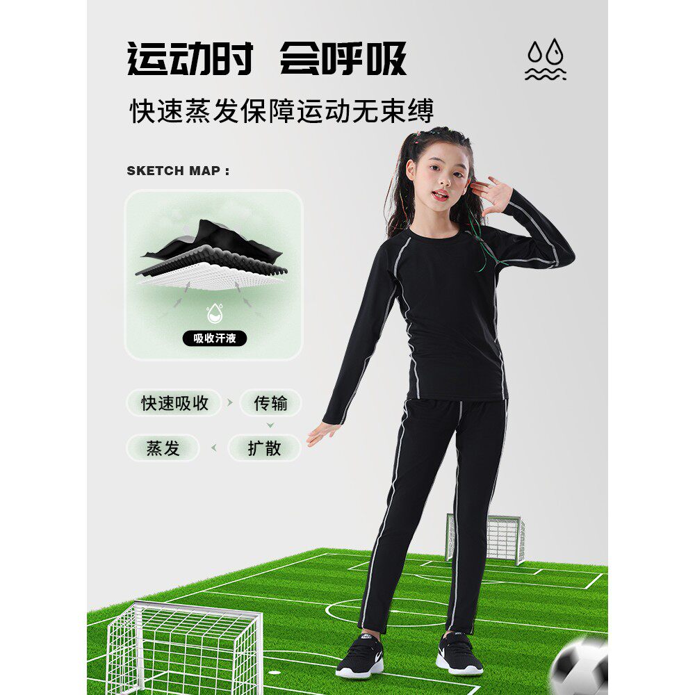 儿童足球服紧身衣训练服套装男女童秋冬篮球速干体能运动内搭打底