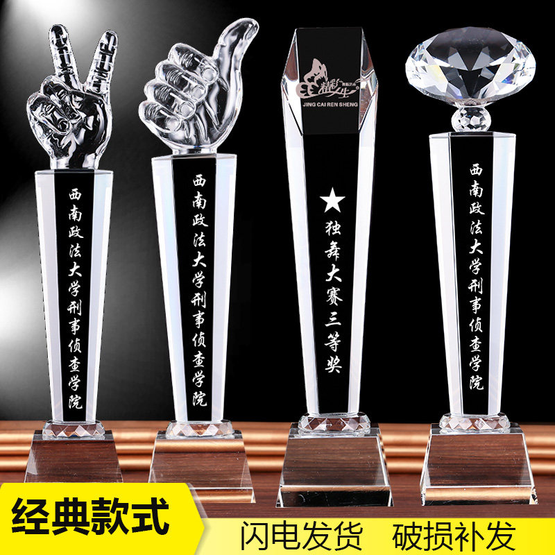 水晶奖杯定制刻字大拇指五角星篮球儿童学生奖牌优秀员工奖纪念品