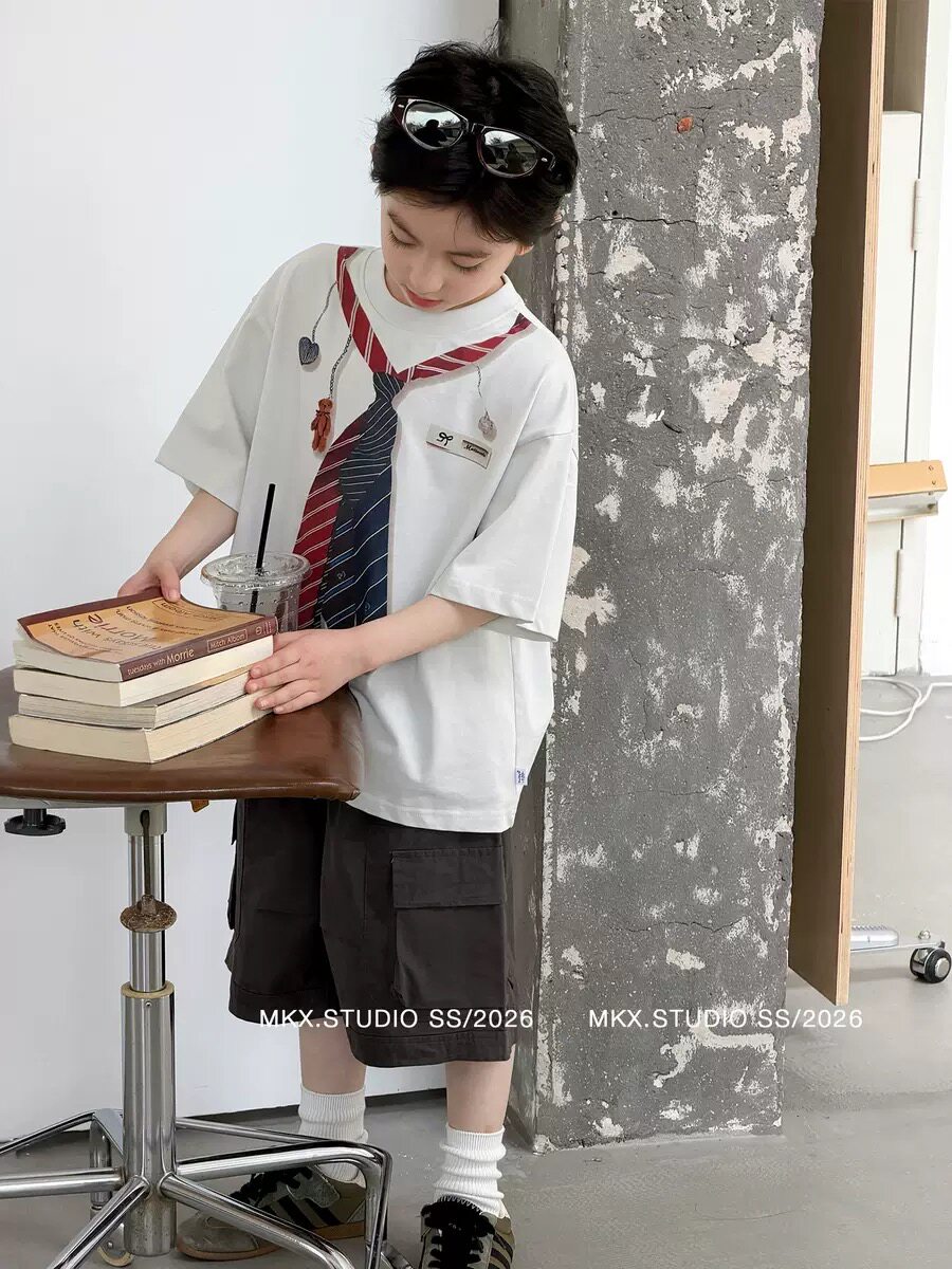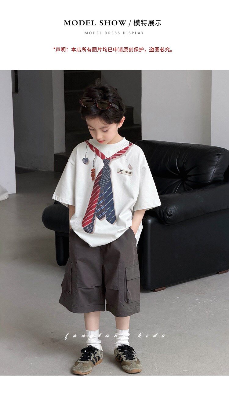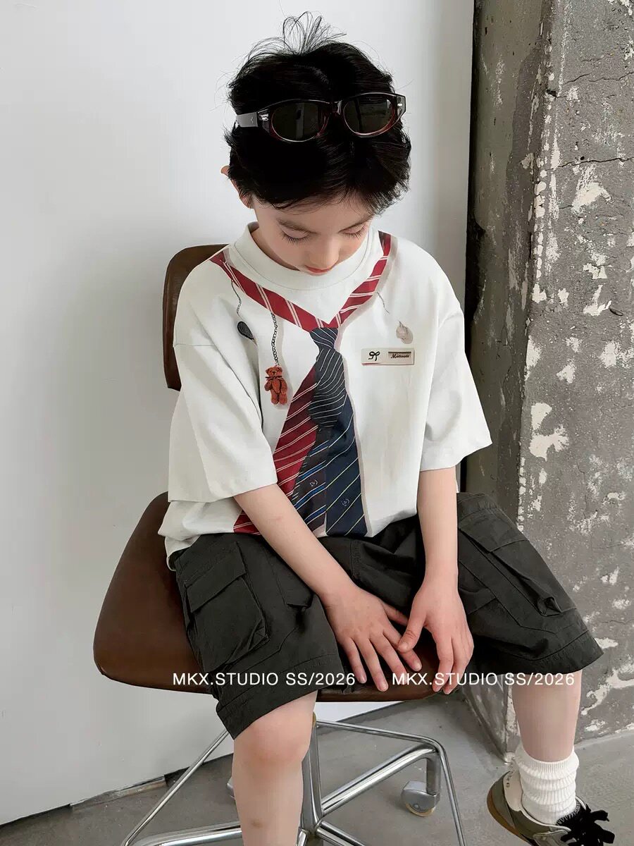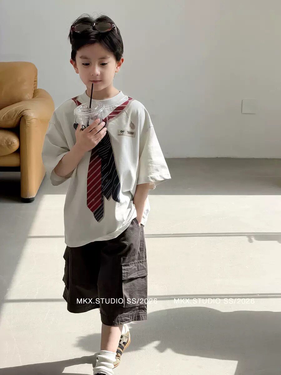 2026新款夏季男童短袖T恤套装夏装时髦帅气潮酷短裤中大童痞帅风