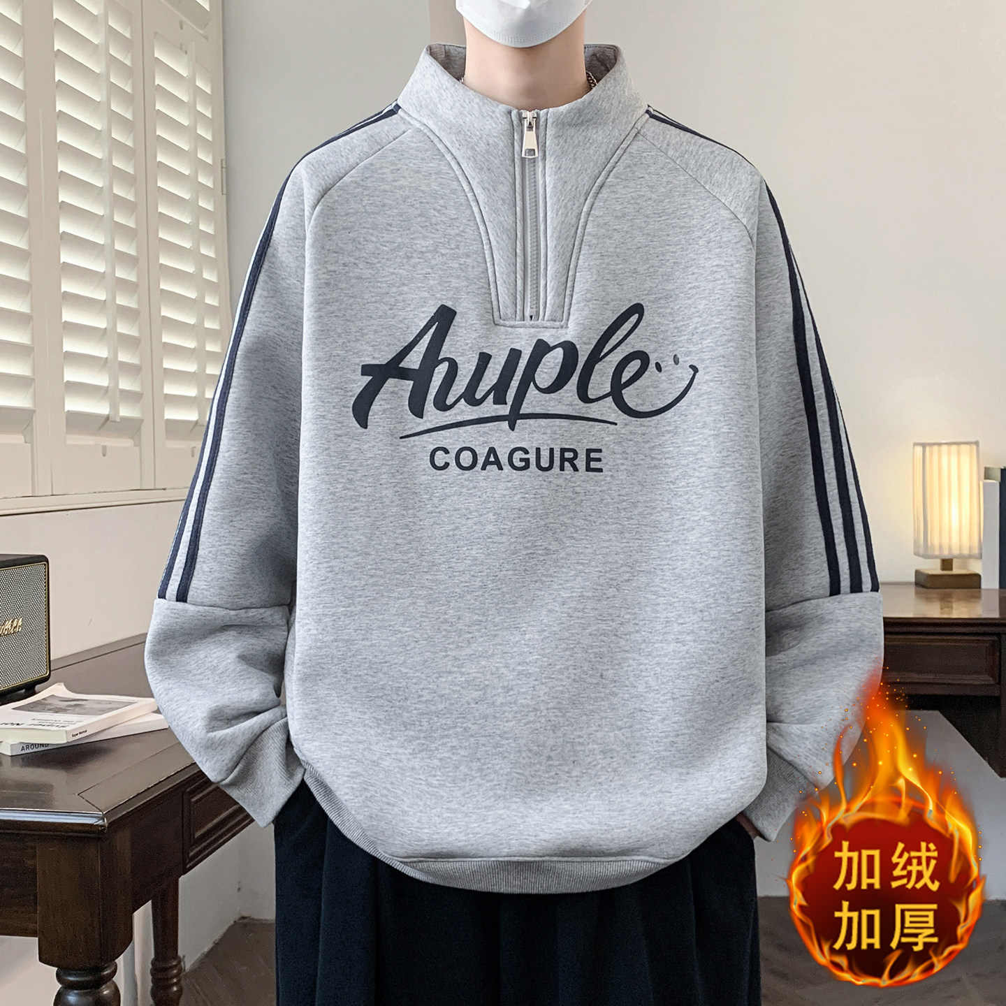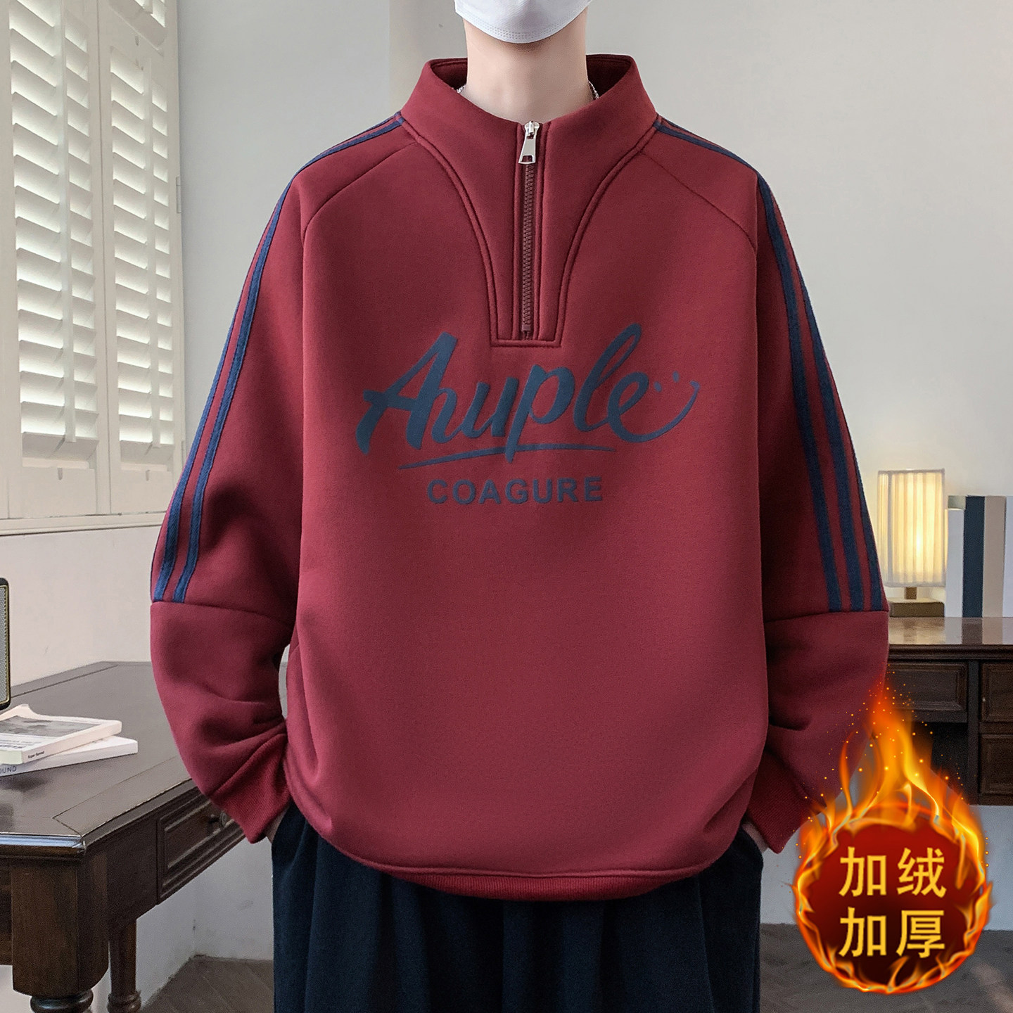半拉链秋冬季新款青少年卫衣男生加绒加厚初高中学生长袖t恤男装