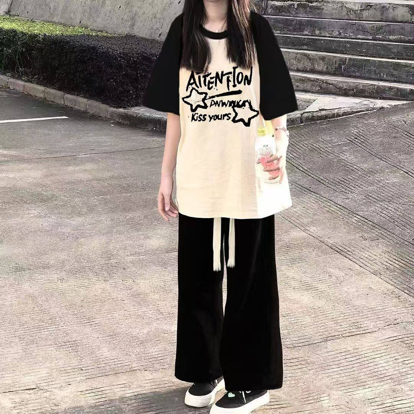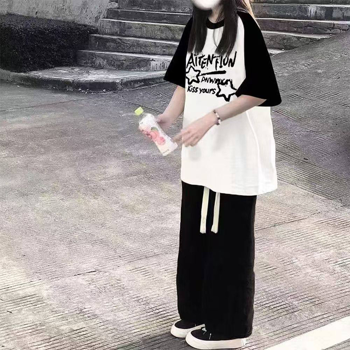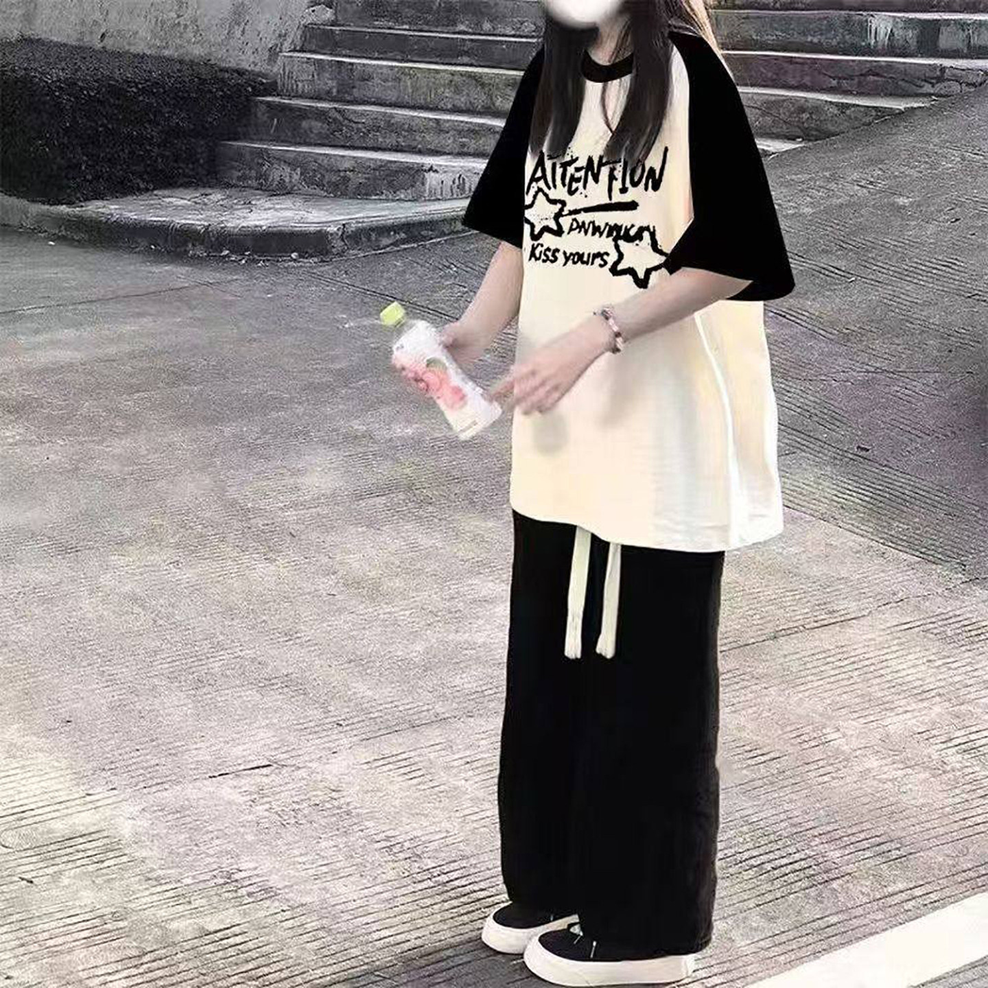 学生套装女2026新款宽松盐系插肩短袖女t恤夏季初中生穿搭一整套