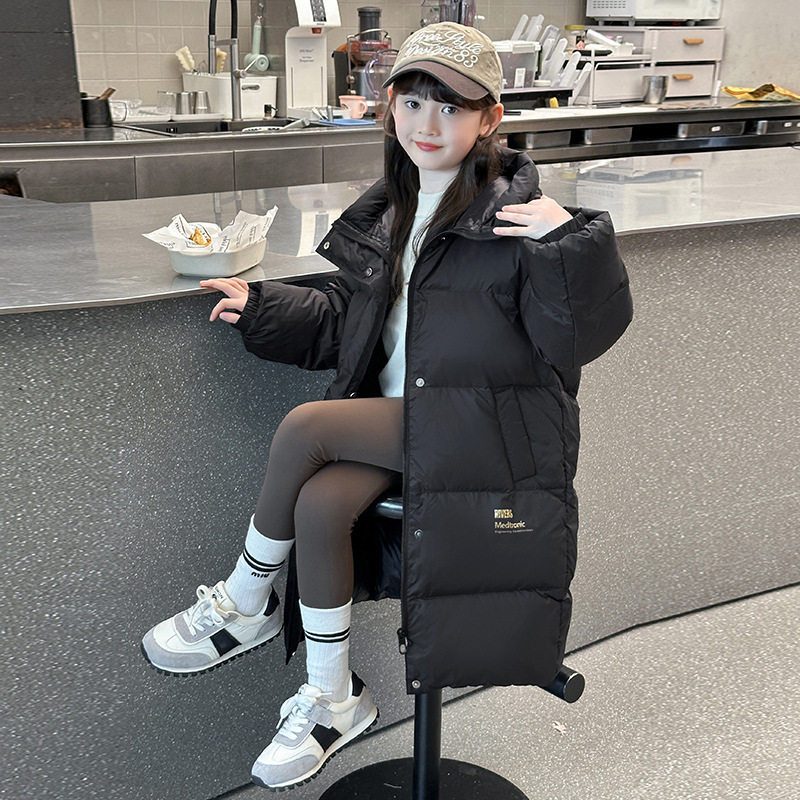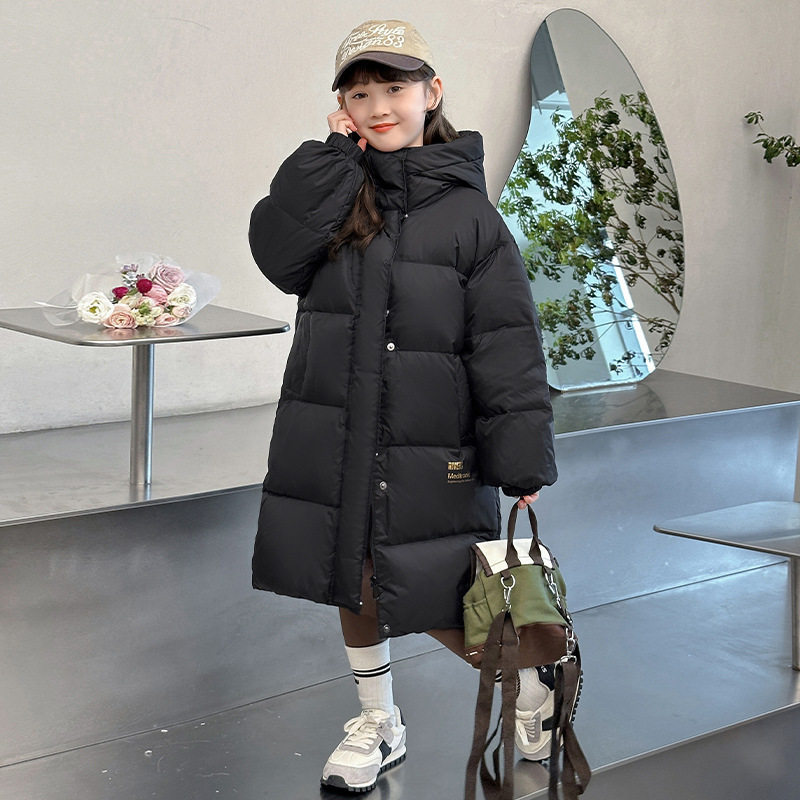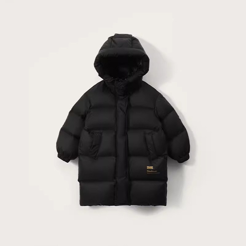 儿童黑金新款外套中长款加厚羽绒棉连帽棉服男女童冬季保暖棉大衣