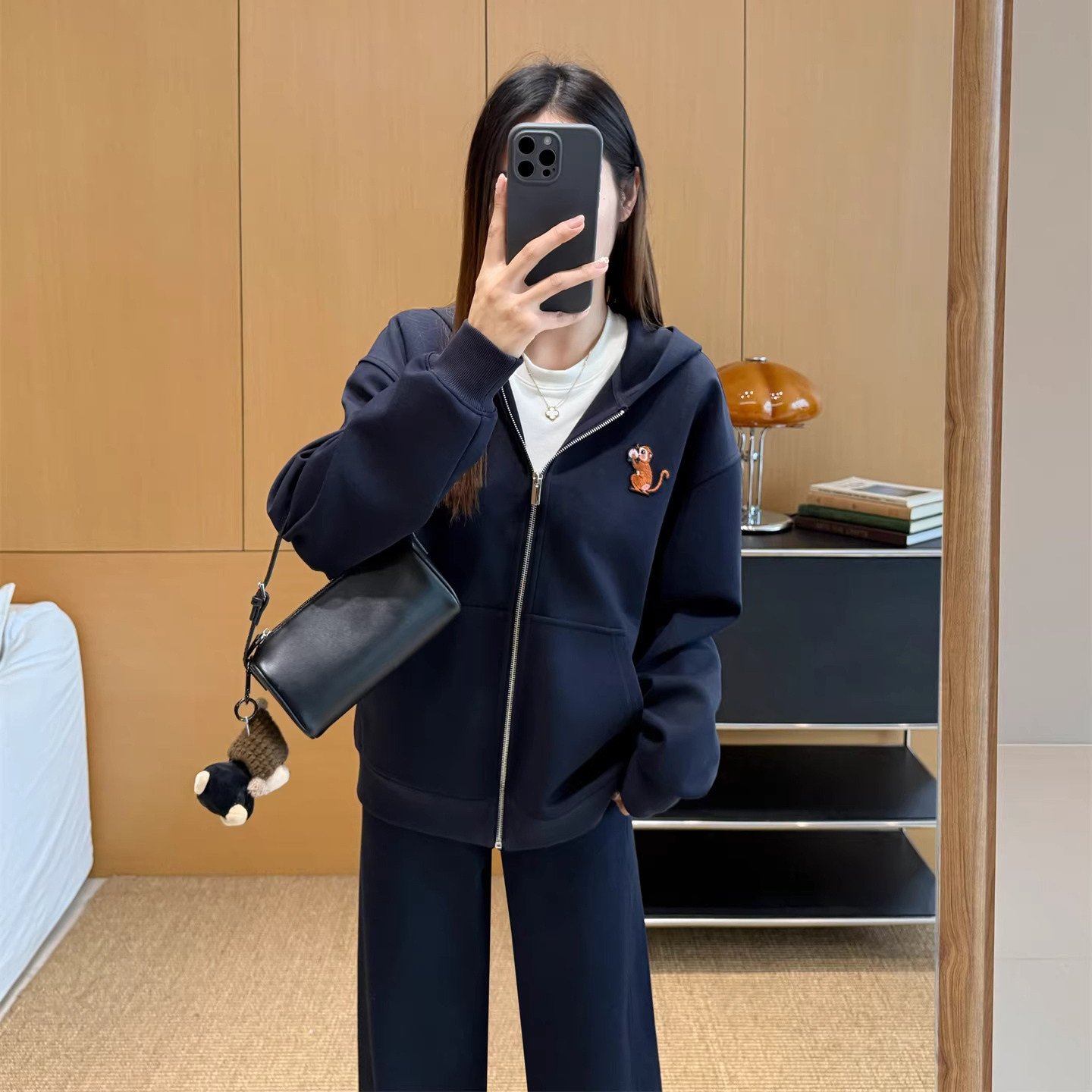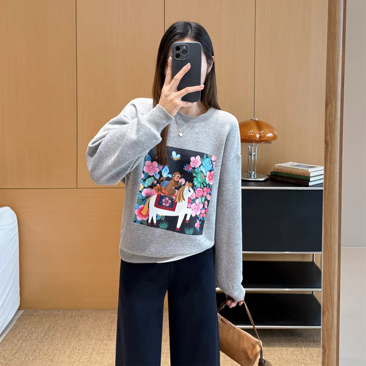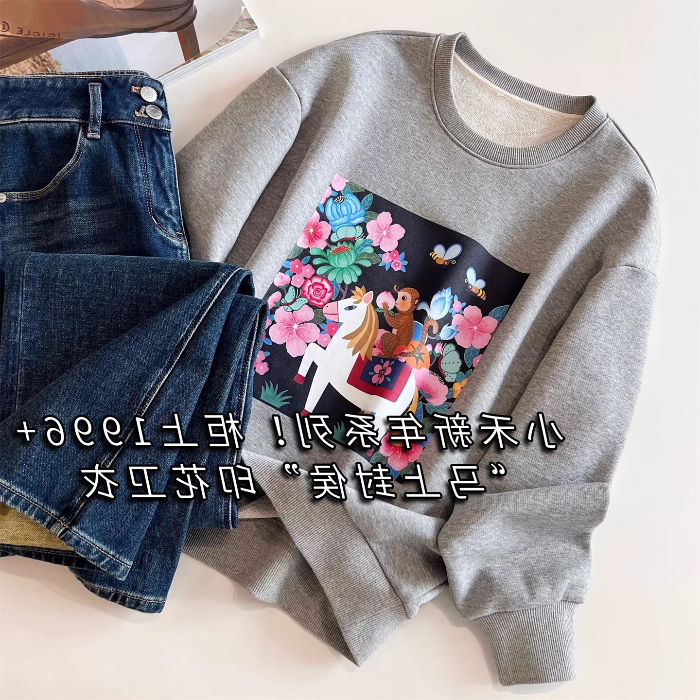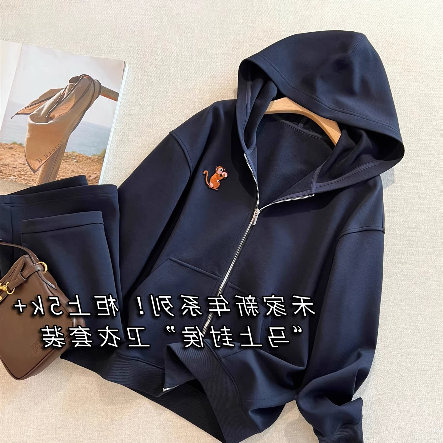 马上封侯禾家2026年春季早春新款休闲印花卫衣女短款连帽刺绣外套