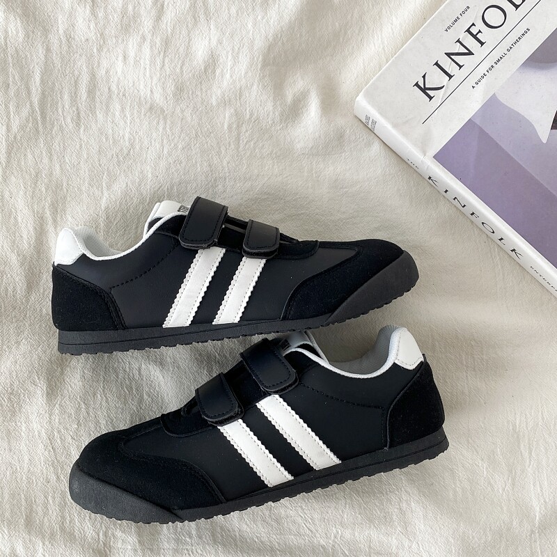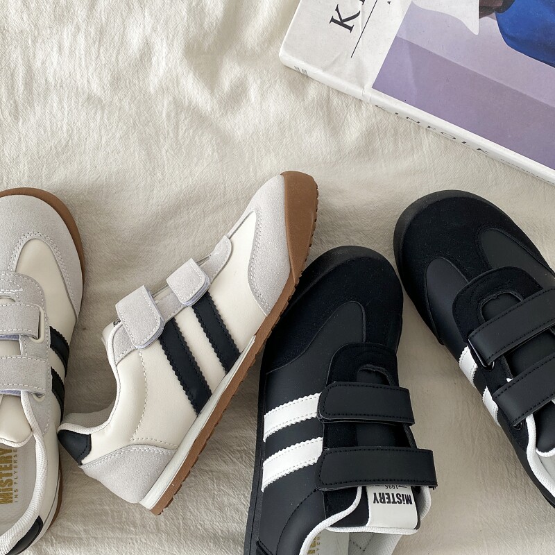 喜叔 黑色魔术贴德训鞋女款春秋百搭平底泡芙板鞋运动休闲阿甘鞋