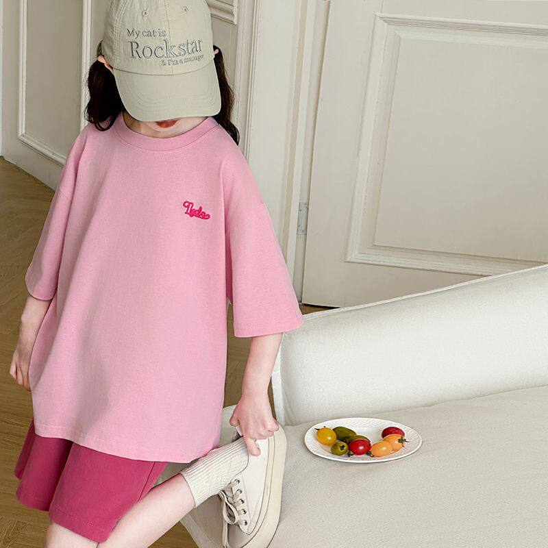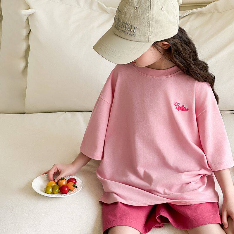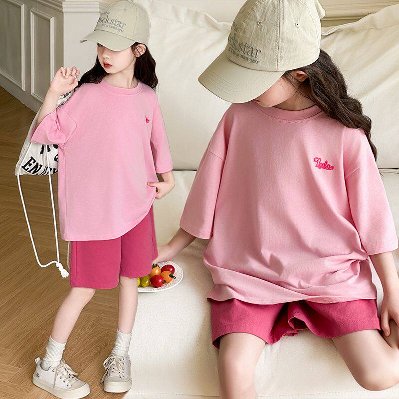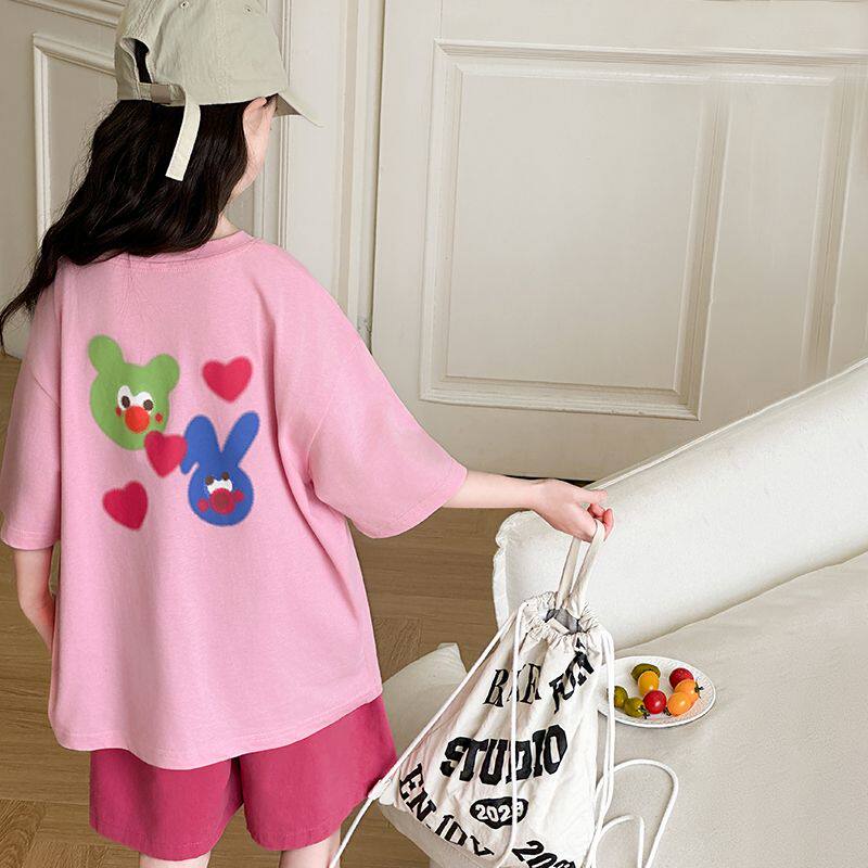 女童夏季短袖T恤中大纯棉女孩儿童洋气半袖套装夏装潮5上衣服8岁9