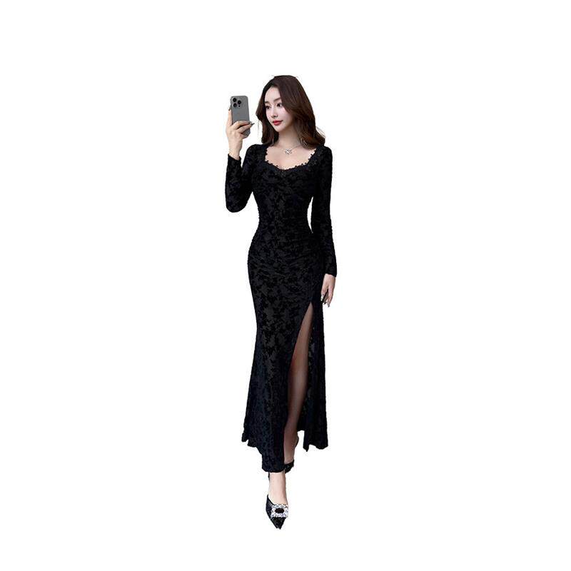 夜总店女装2026新款低胸性感连衣裙长袖修身显瘦柔式技师工作服秋