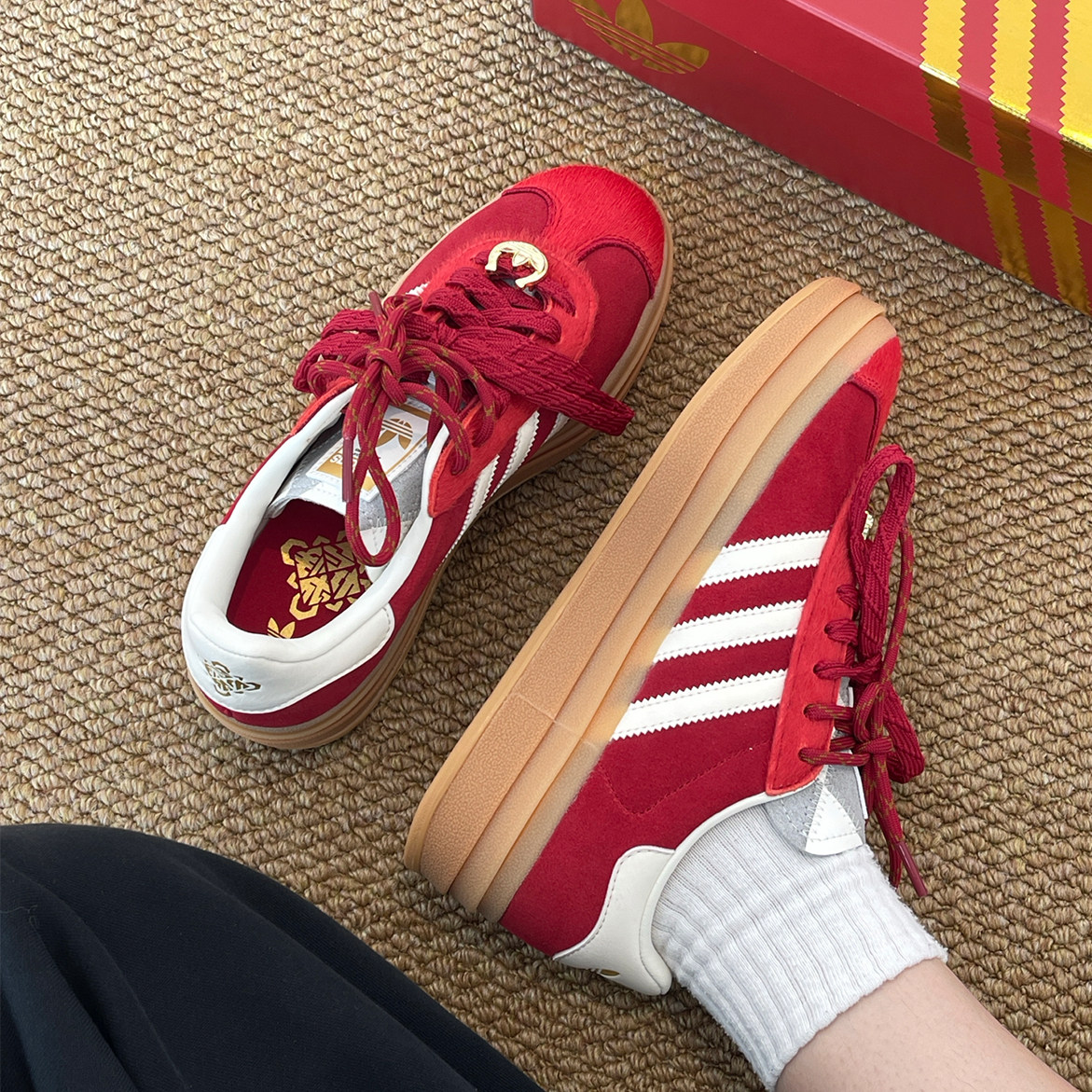 阿迪达斯adidas originals GAZELLE马年女款经典厚底德训鞋KJ4293
