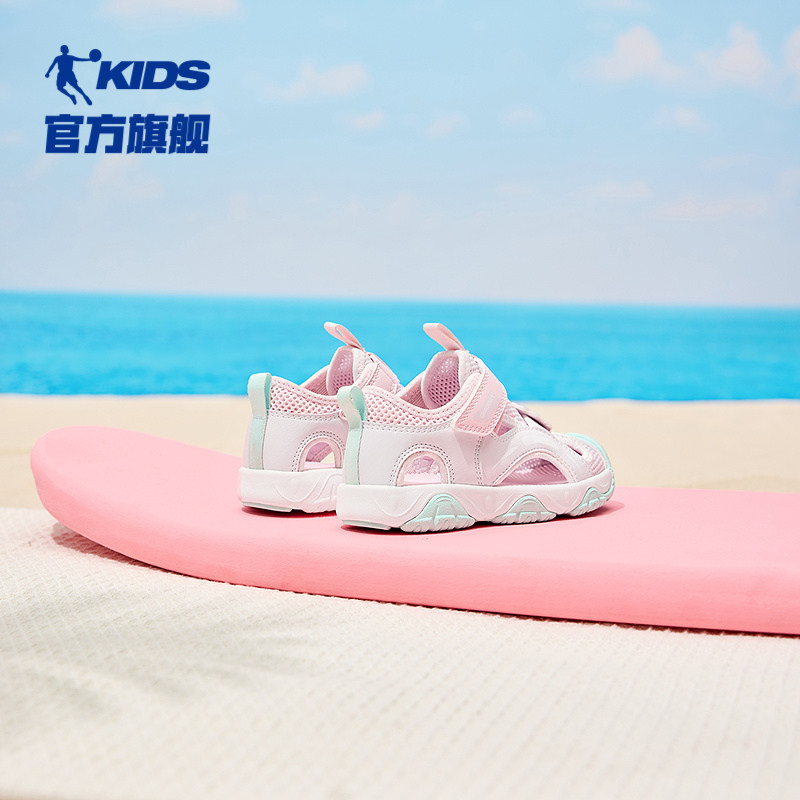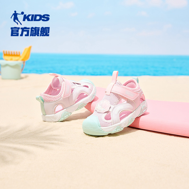 乔丹女宝宝运动鞋儿童镂空框子鞋2026夏季新款魔术贴包头女童凉鞋