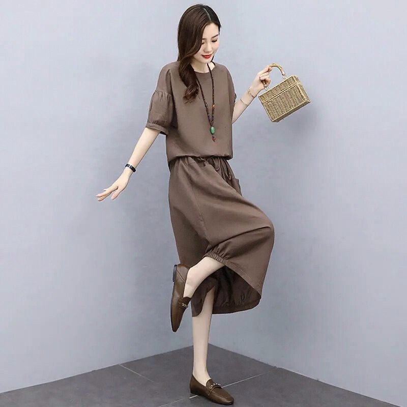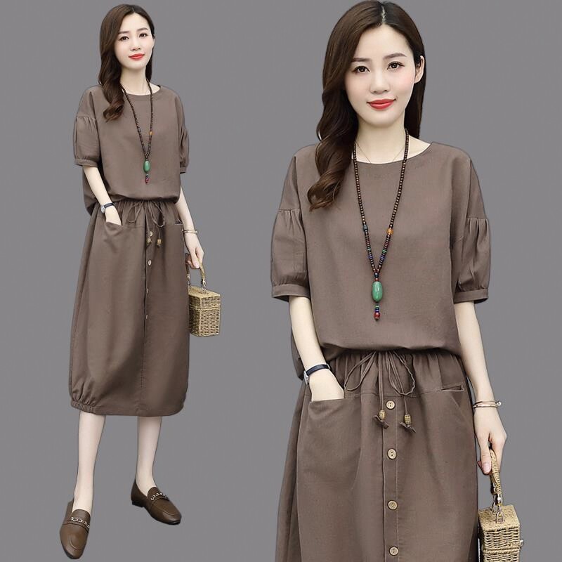 时尚连衣裙女2026年新款夏季大码女装两件套宽松显瘦高端套装裙潮
