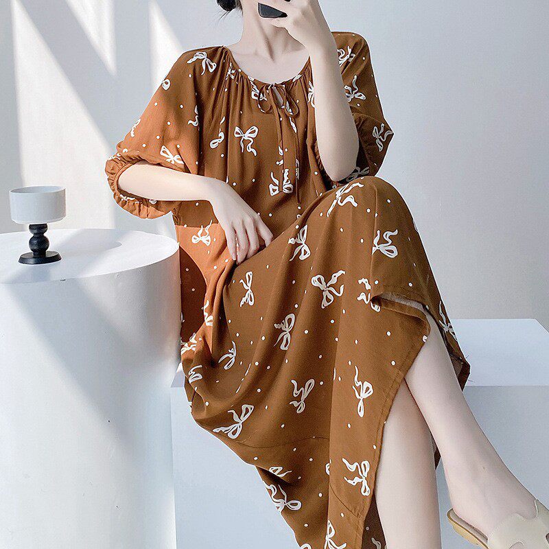 加长版睡裙夏天短袖睡衣长裙棉绸家居服连衣裙胖MM女士加大码长裙