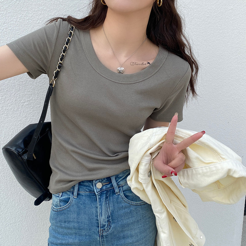 纯白色圆领正肩短袖t恤女装内搭2026春夏新款螺纹棉修身好看上衣