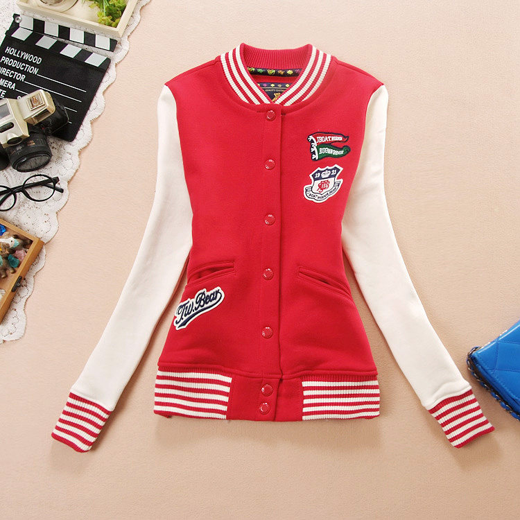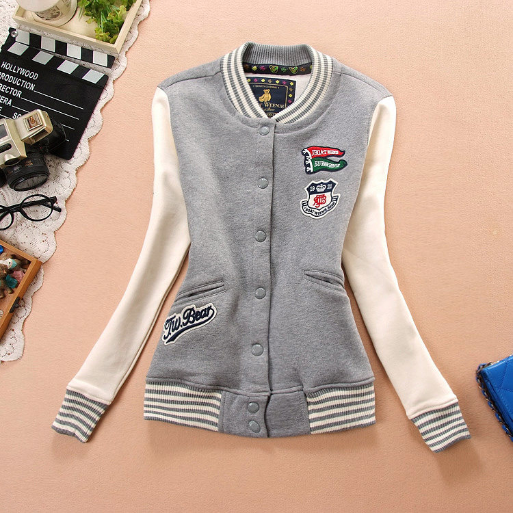 推荐女生加厚抓绒秋冬季棒球服卫衣初中高中女孩外套大码开衫秋衣