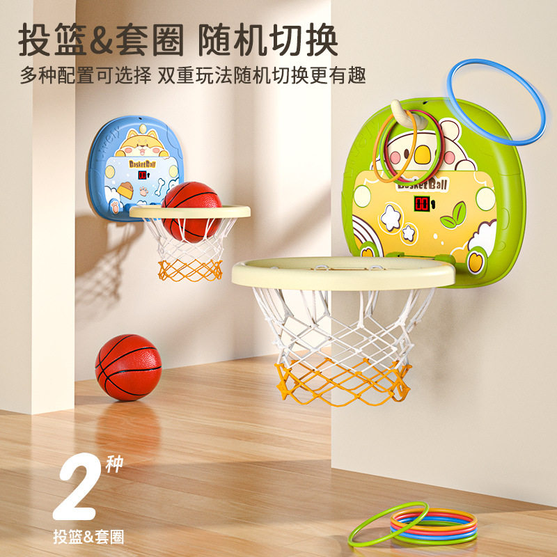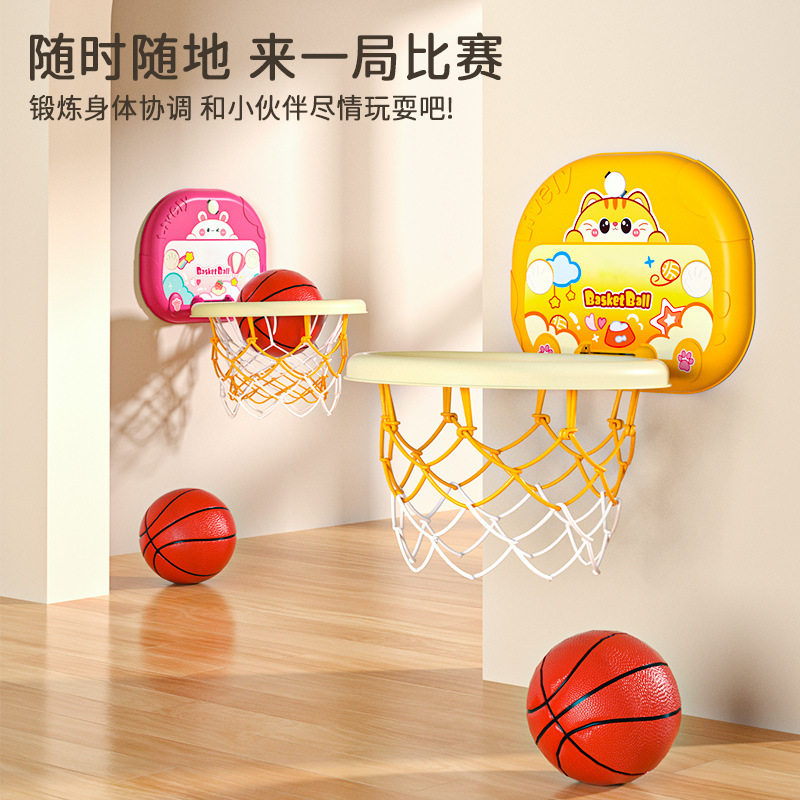 儿童悬挂式卡通篮球架免打孔篮球板幼儿园室内运动计分投篮框玩具