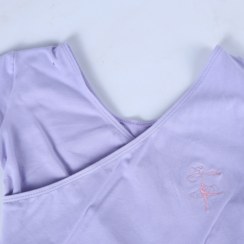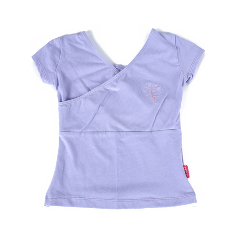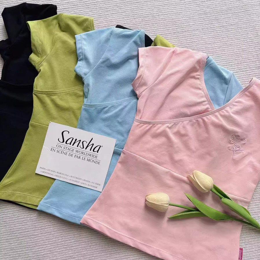Sansha三沙女童芭蕾舞蹈服前交叉V领短袖上衣T恤修身形体练功服