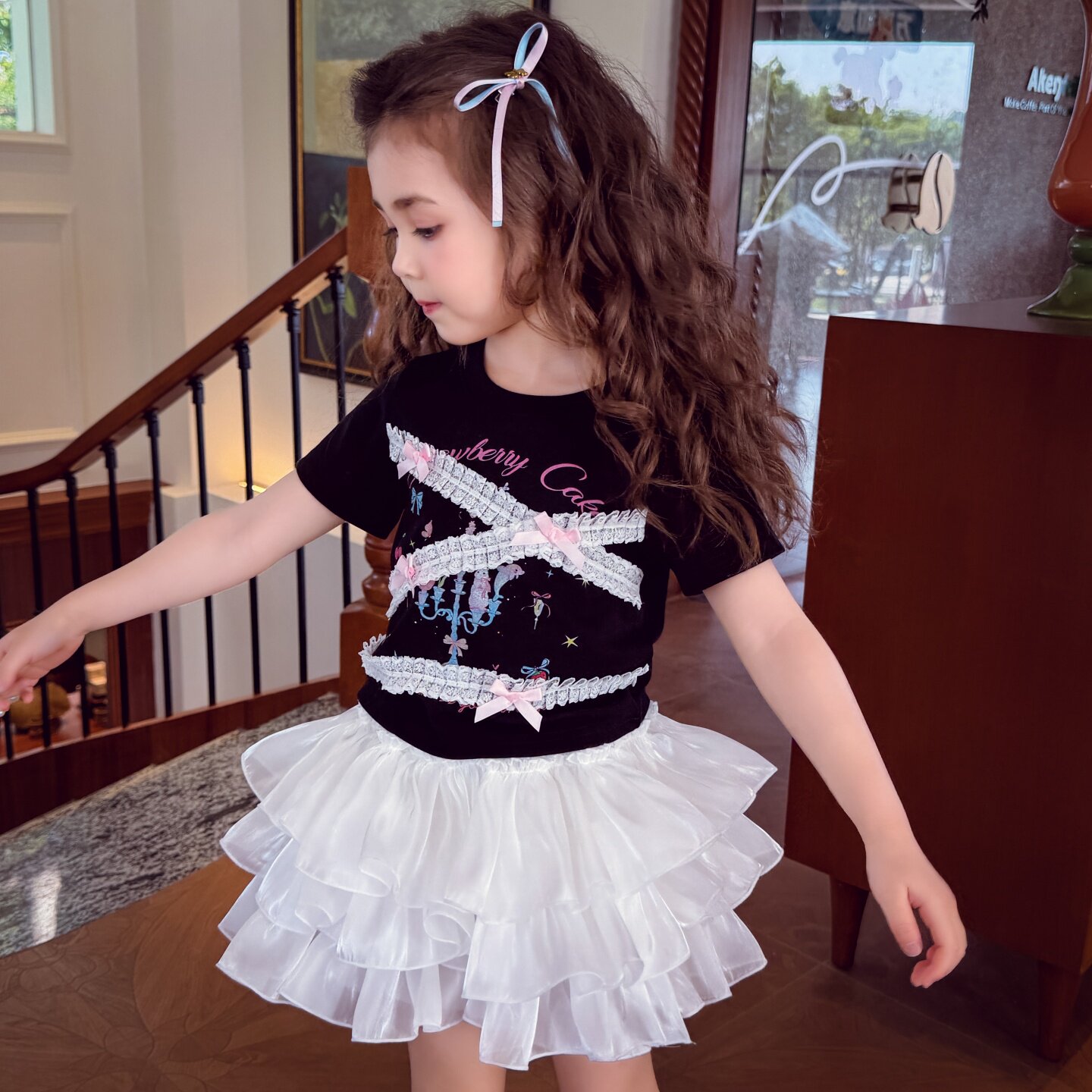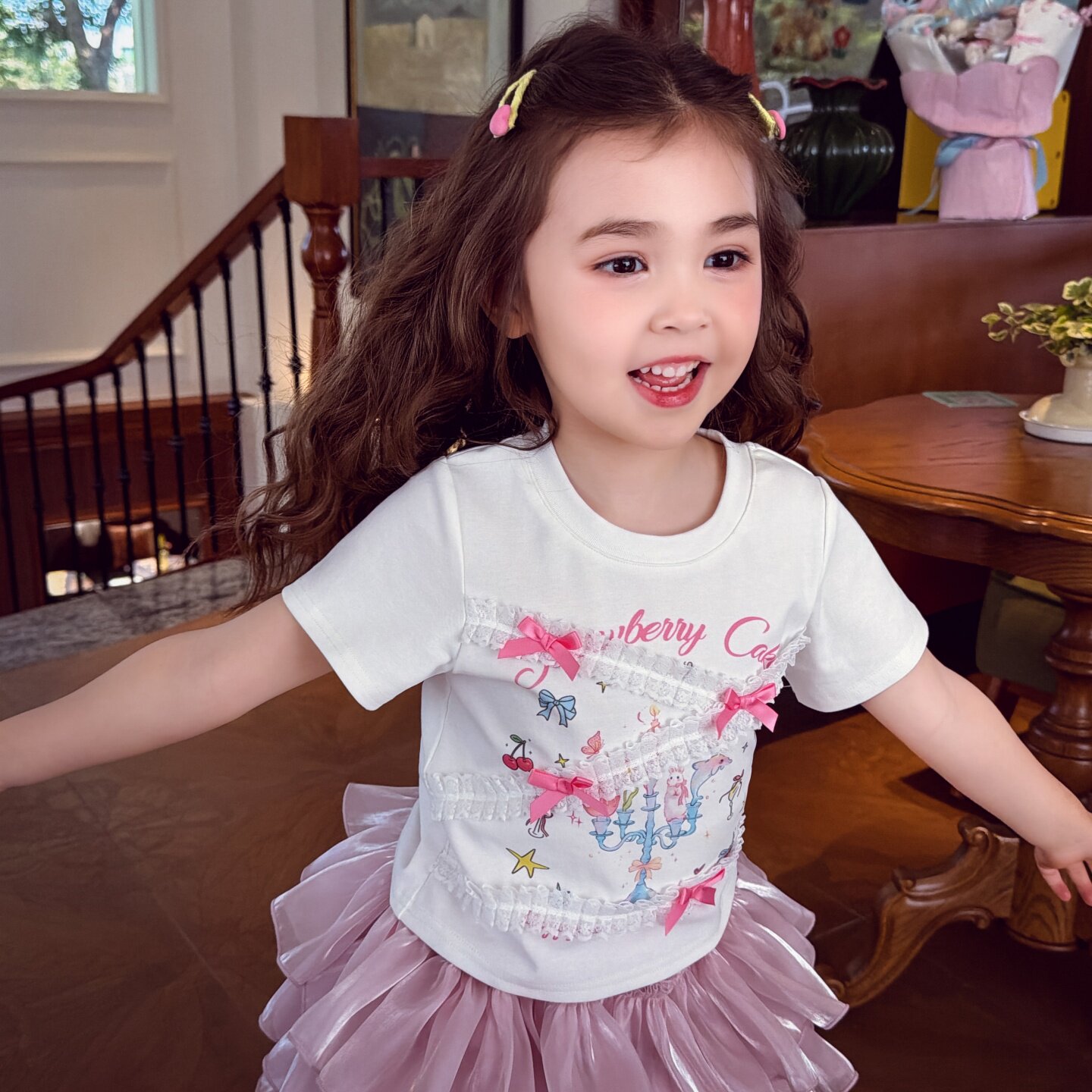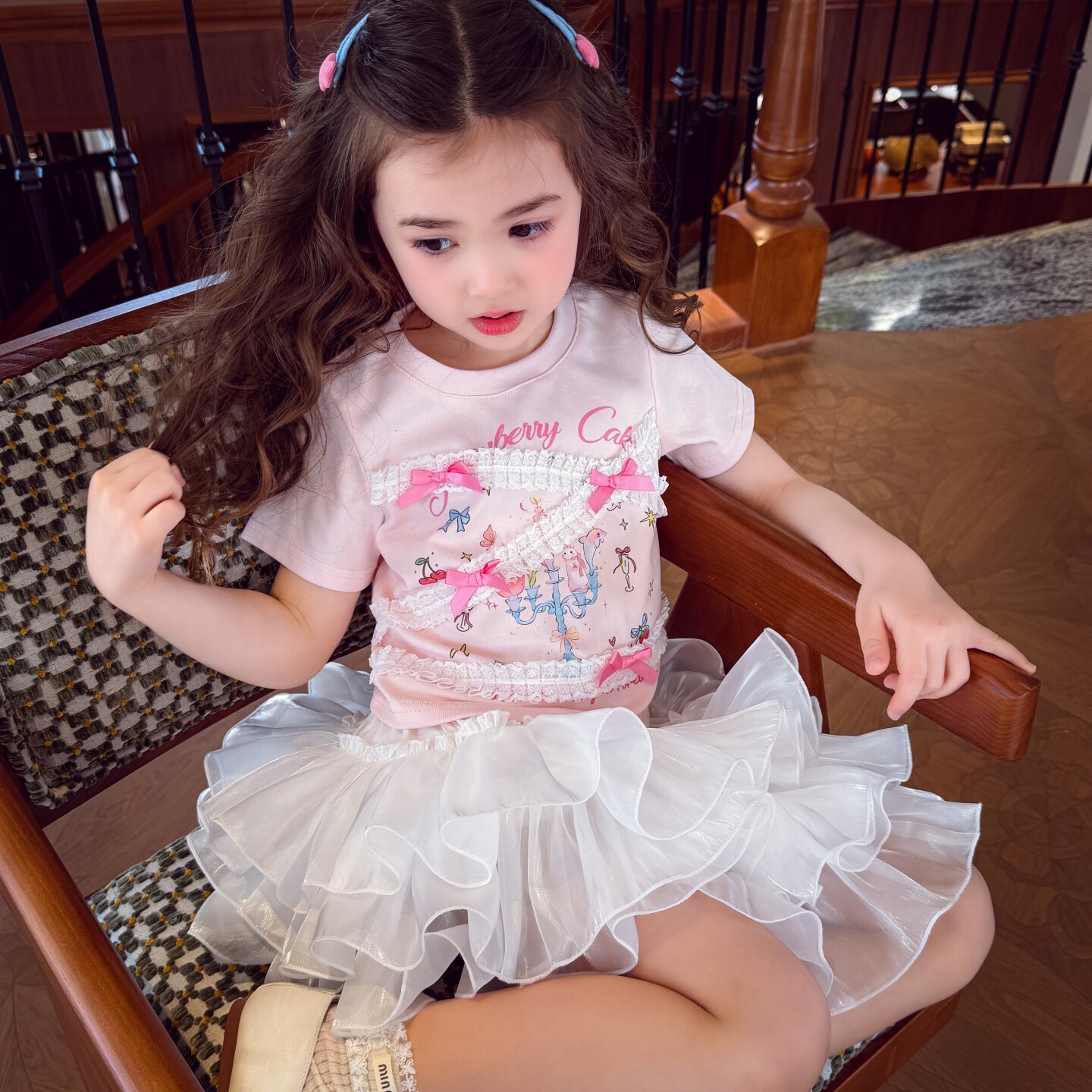米米哈罗女童短袖夏季女孩上衣2026新款儿童修身卡通芭蕾风t恤潮