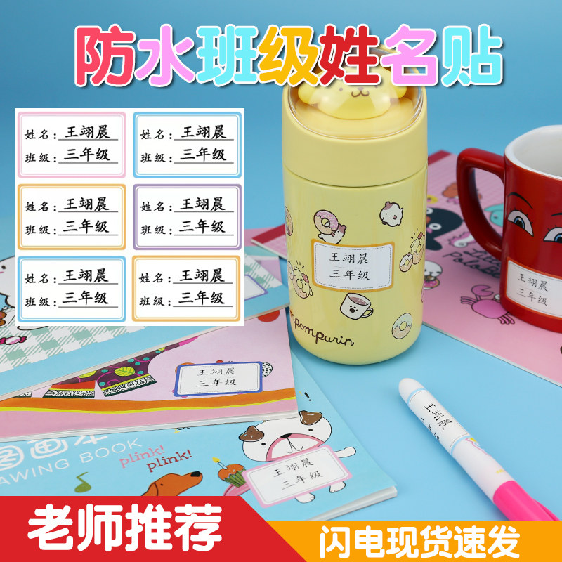 小学生初中班级学号名字贴透明防水姓名贴纸水杯标签贴不干胶定制