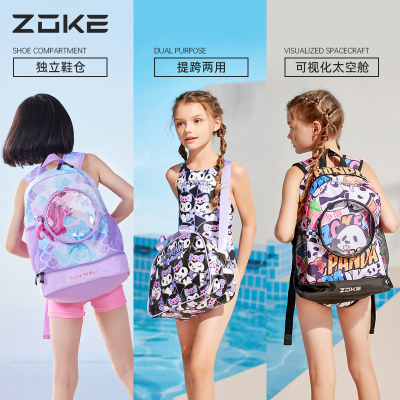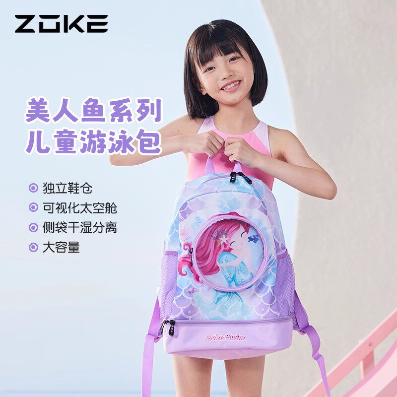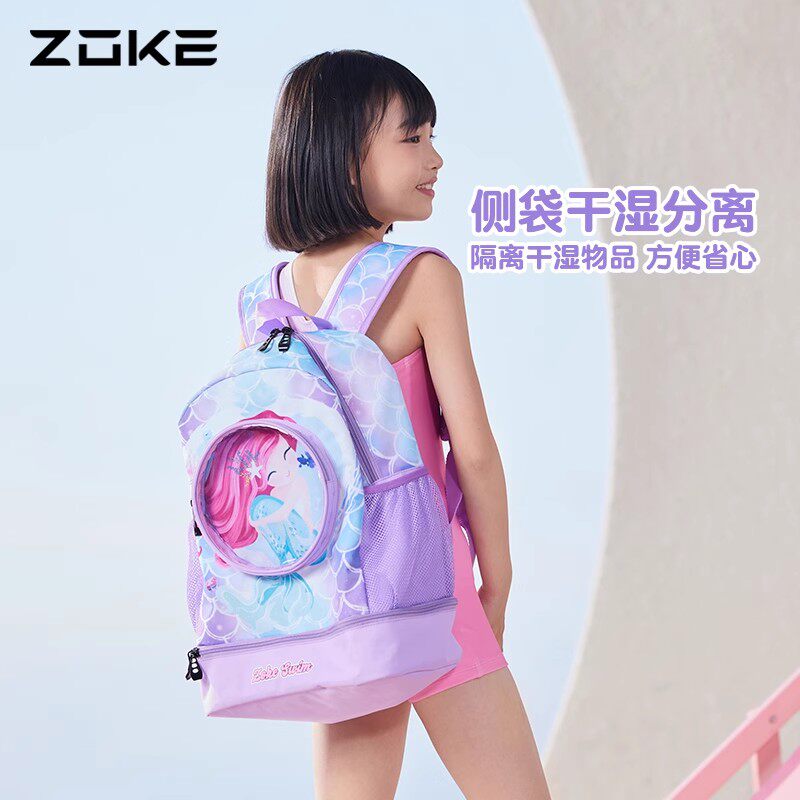 洲克儿童泳包女孩干湿分离男童女童可爱卡通防水大容量双肩游泳包