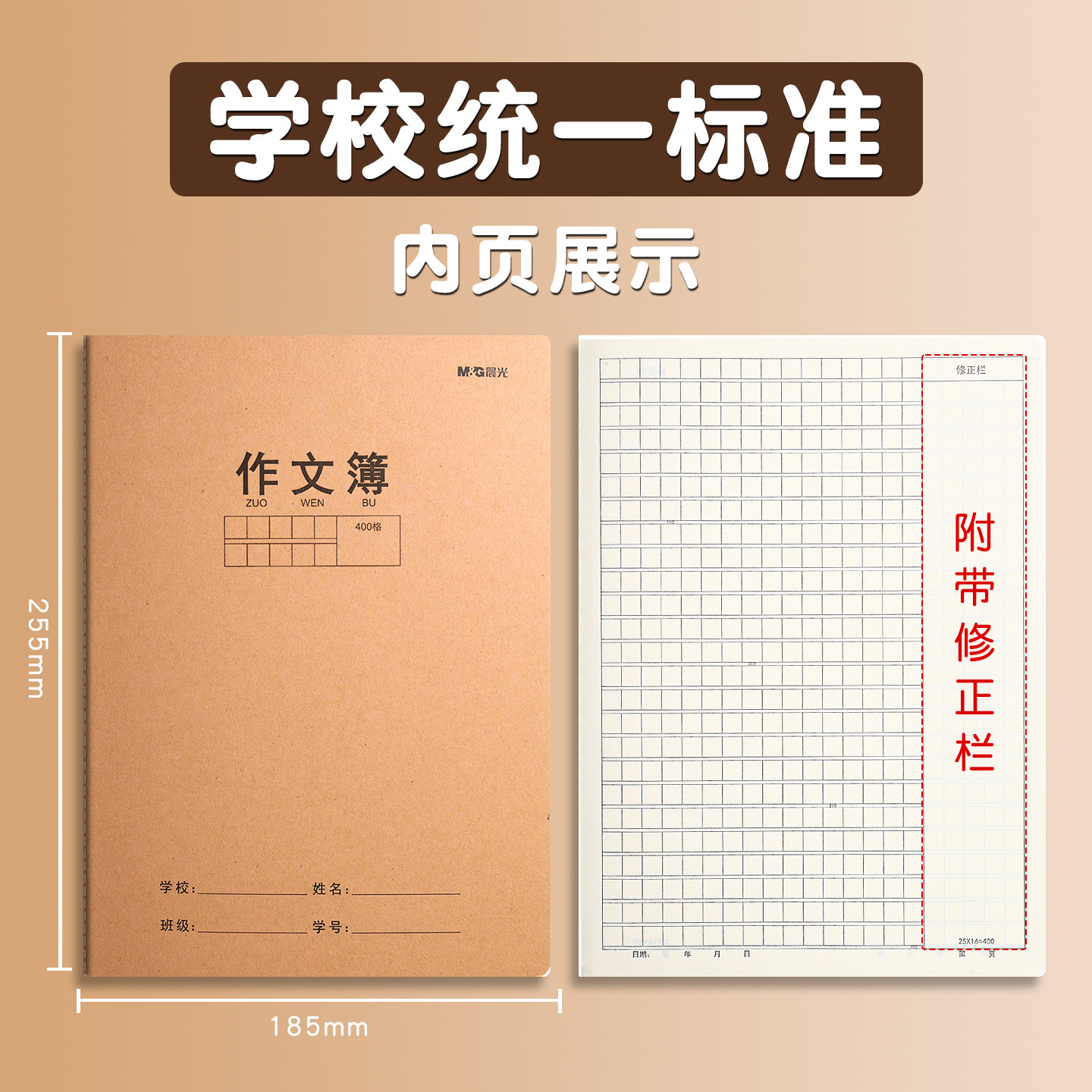 晨光作文簿学生作业本全国统一方格本400格初中生练习薄16K牛皮纸作文本学生加厚本子通用课业本作文练习簿