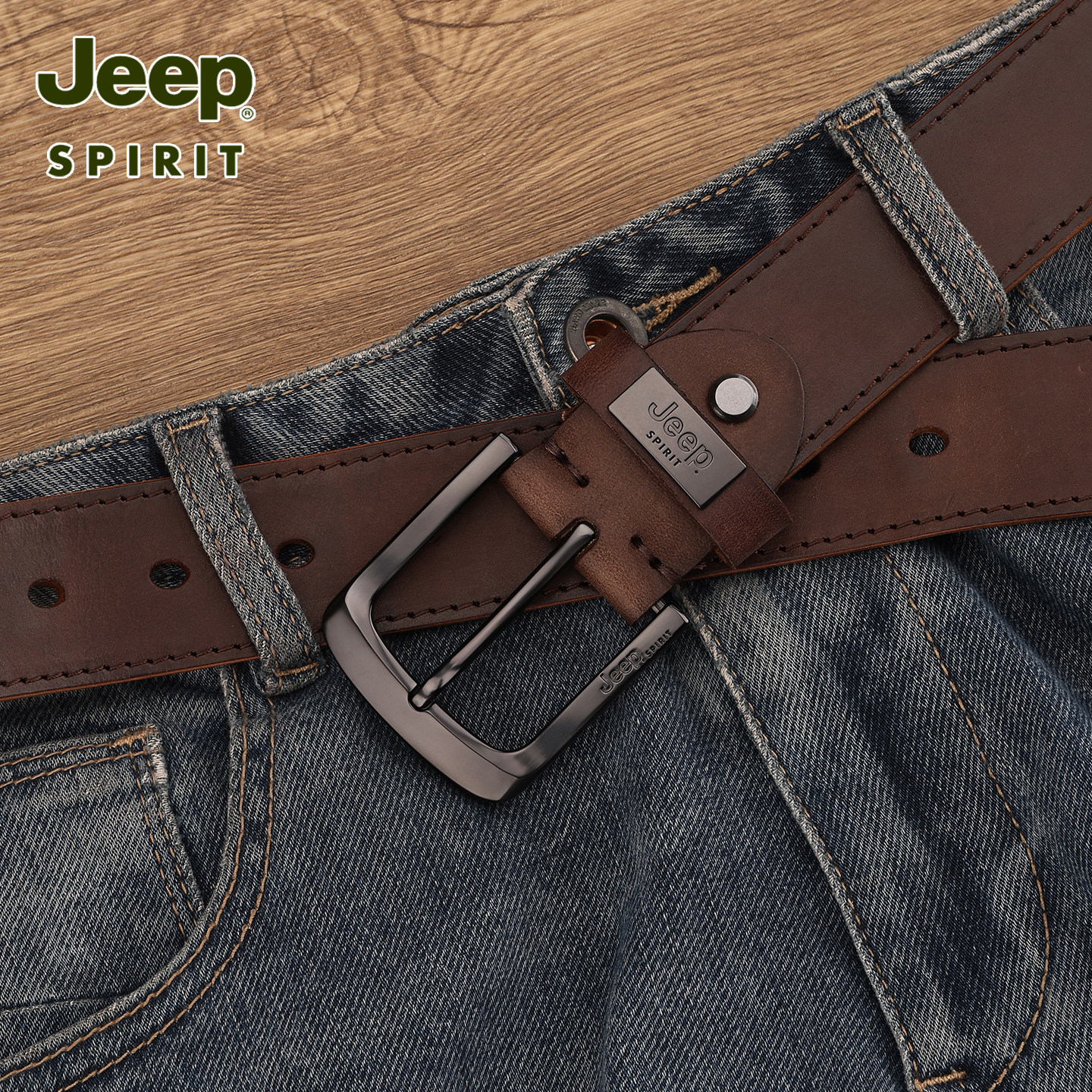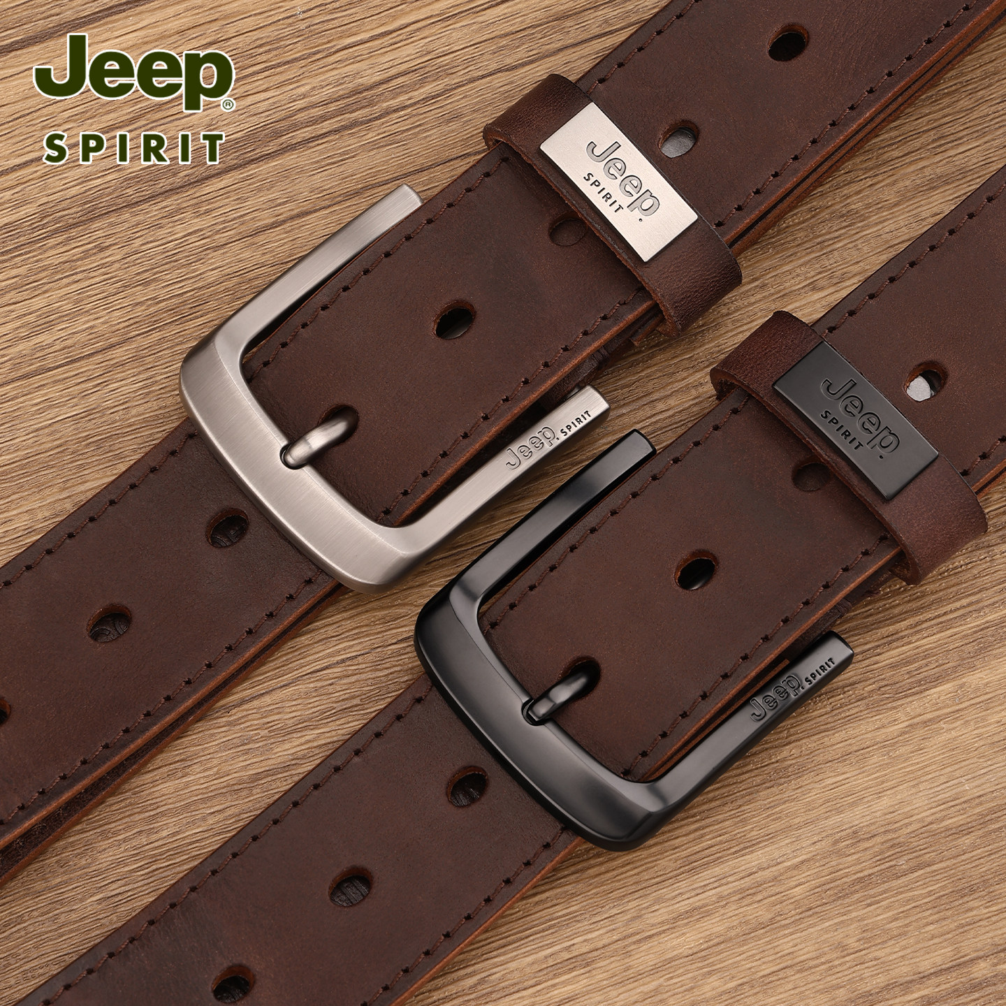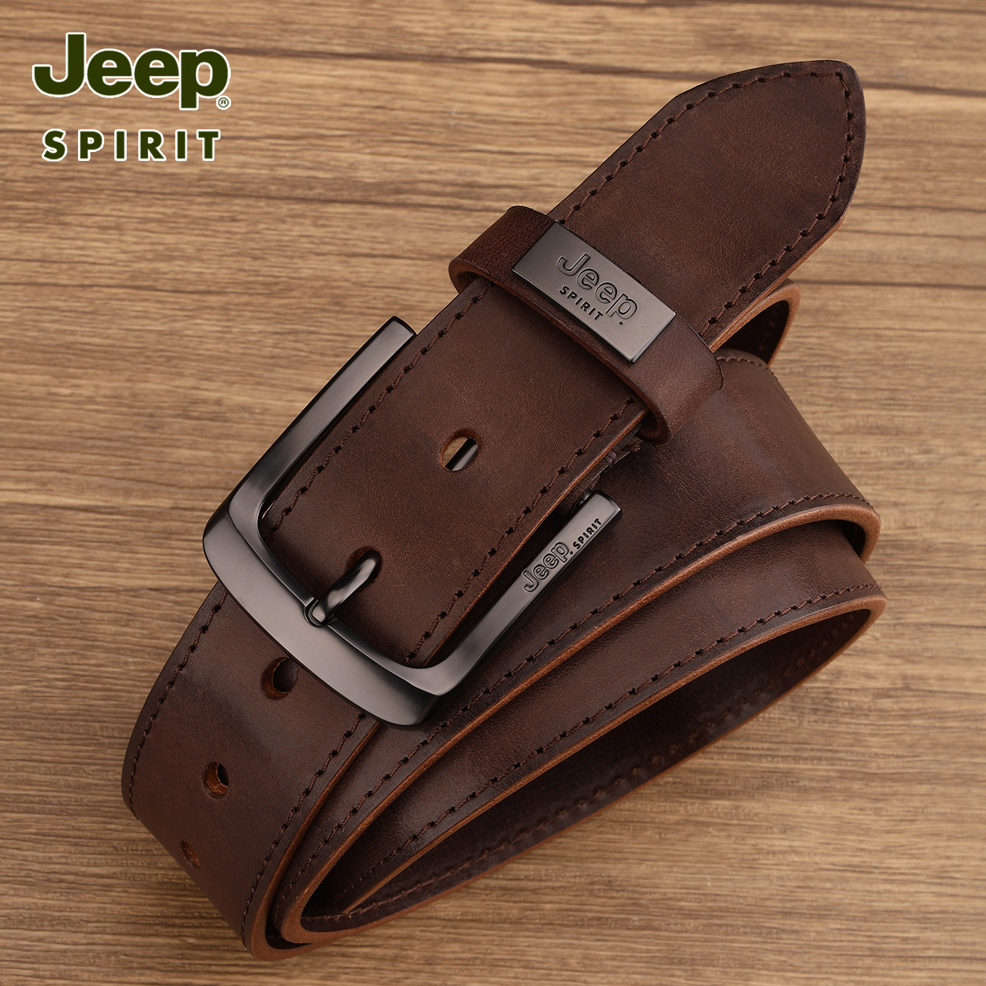 311线报网描述:Jeep吉普男士真皮腰带头层牛皮针扣皮带
