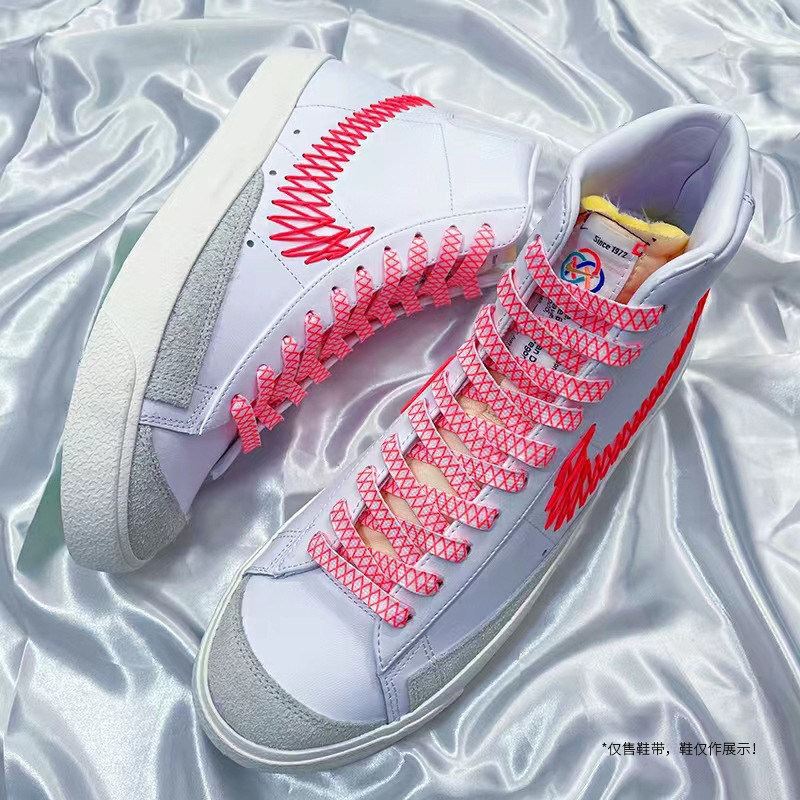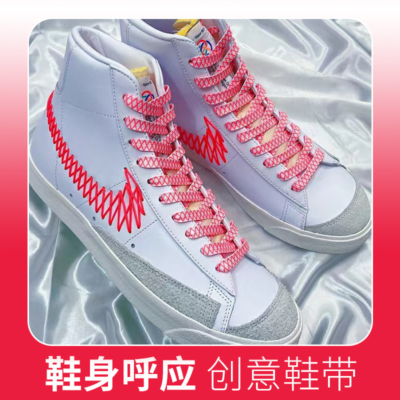 Blazer开拓者白红网状鞋带7“cny”中帮板鞋创意拼色鞋系绳如意结