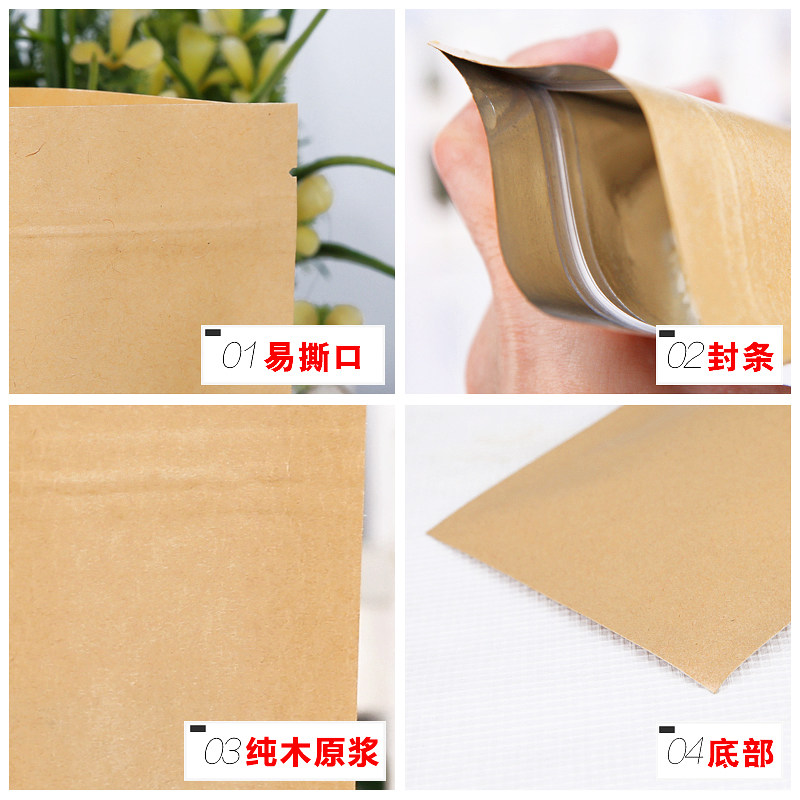 平底牛皮纸袋自封袋面膜粉咖啡茶叶试用食品分装密封口包装袋定做