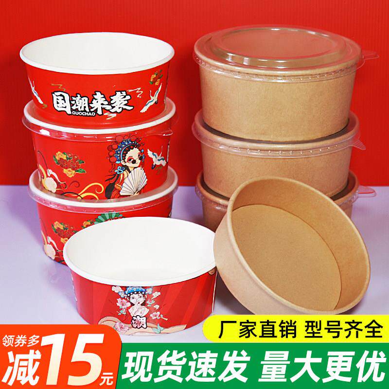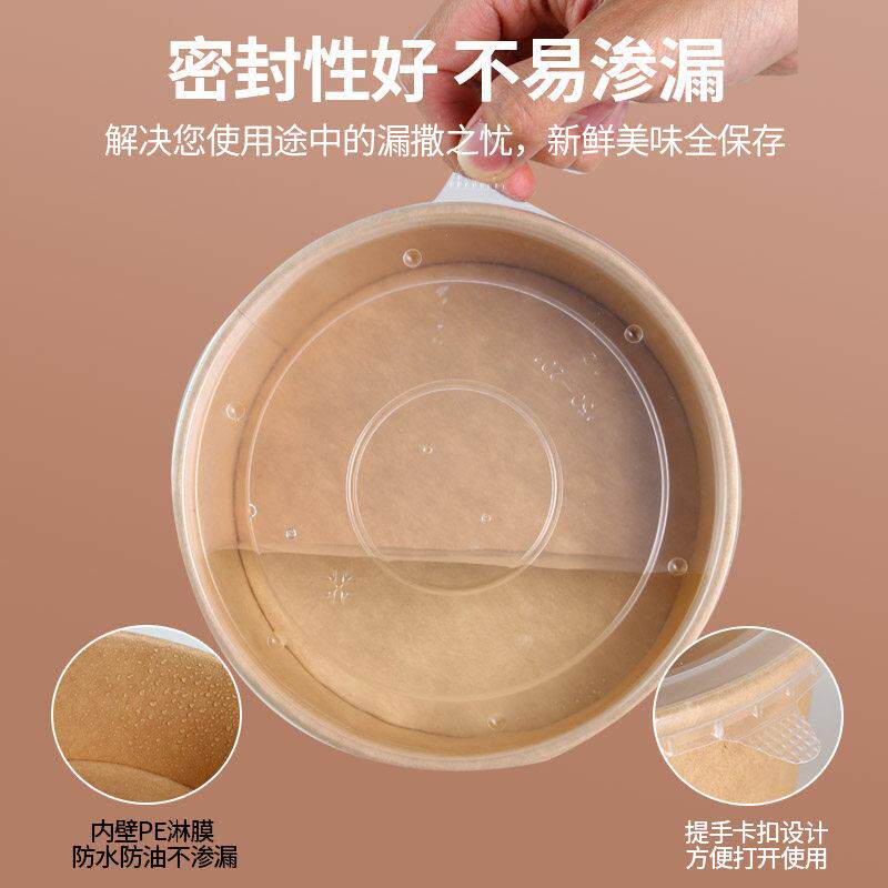 牛皮纸碗一次性圆餐盒国潮打包盒环保带盖子外送便当盒沙拉纸碗饭