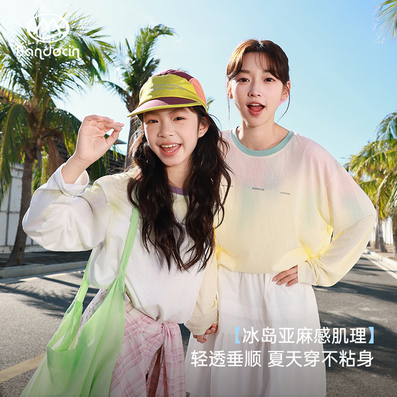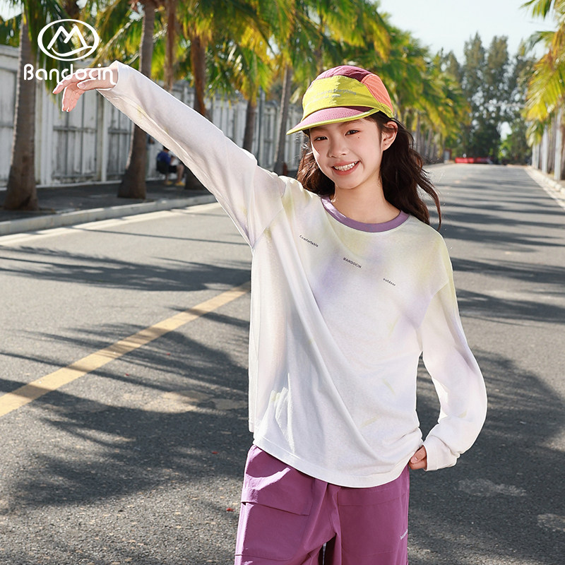 半度闲女童夏装T恤中大童洋气多巴胺打底衫薄款女孩防晒长袖上衣