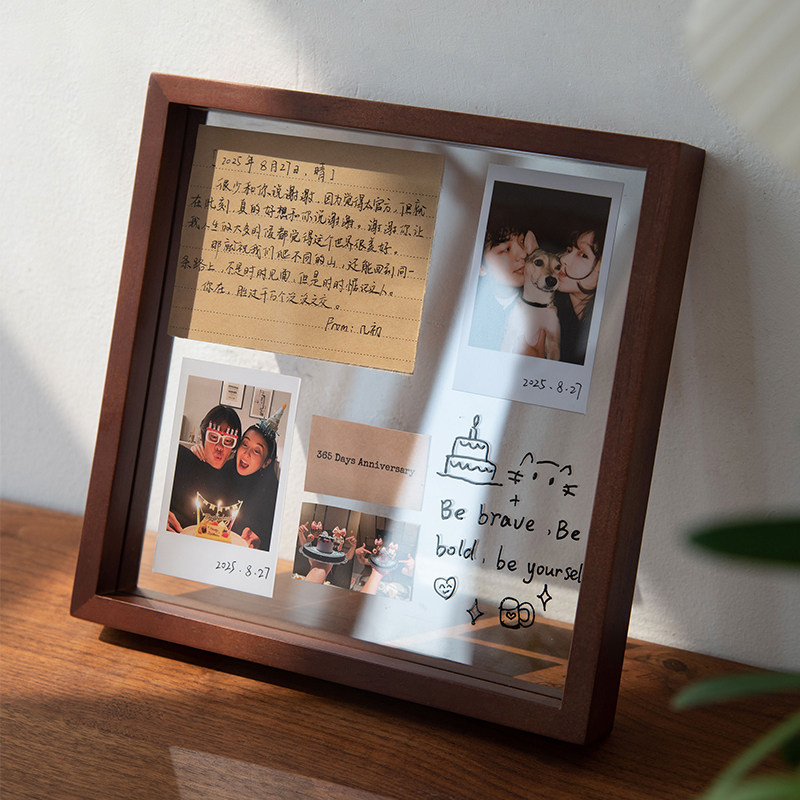 时几初原创正版一周年实木拍立得透明框diy手工生日情侣照片礼物