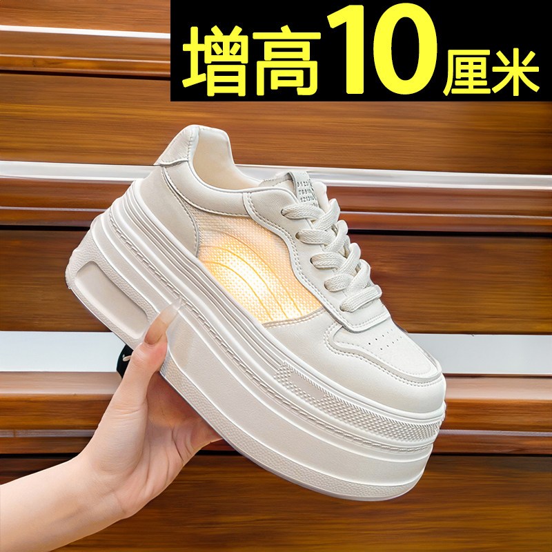 10cm内增高小白鞋女款2026新款春夏季轻便百搭厚底板鞋休闲松糕鞋