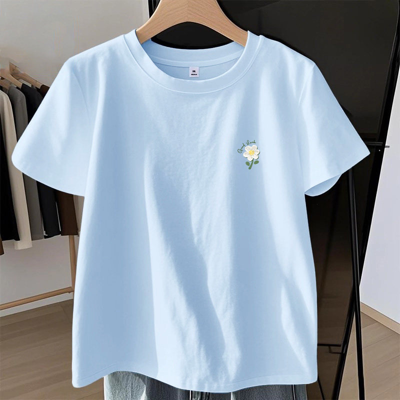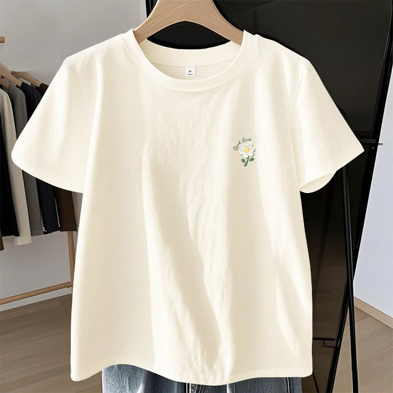 NOE真维斯青少年绿色正肩纯棉短袖t恤女夏2026新款小个子短款上衣