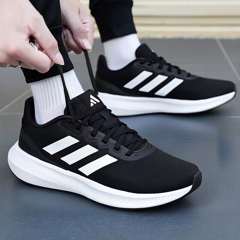 阿迪达斯男鞋夏季新款透气轻便运动鞋健步缓震黑色网面耐磨跑步鞋