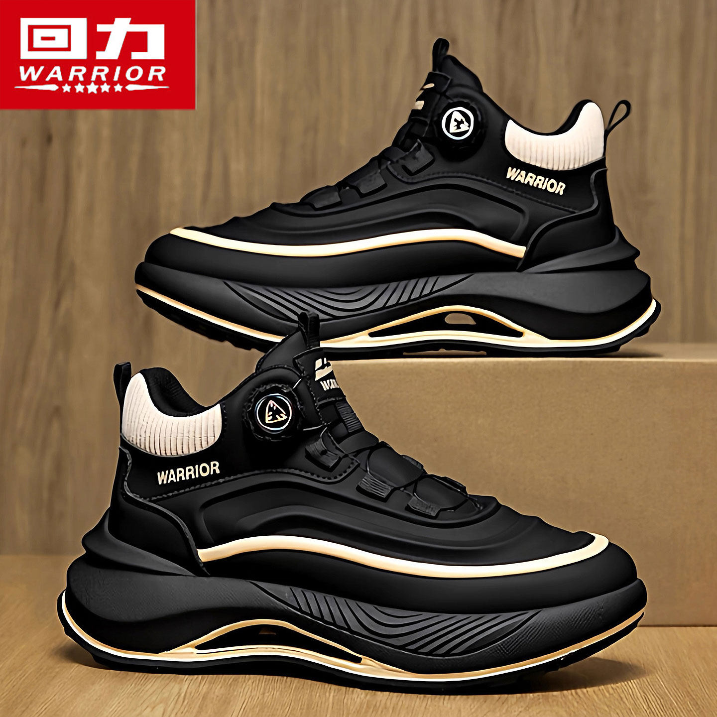 回力爆款男鞋2025冬季新款皮面防水一脚蹬老爹鞋厚底加绒运动棉鞋