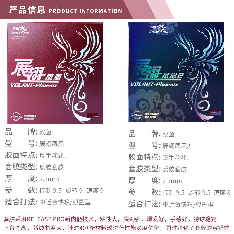 双鱼套胶乒乓球拍胶皮配红双喜狂飙皓3手工DIY粘拍专业比赛球拍