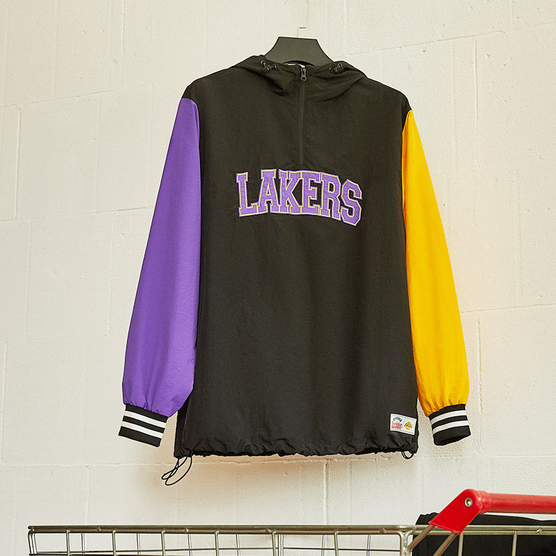NBA官方湖人勇士春季男女情侣外套拼色户外运动宽松连帽卫衣长袖