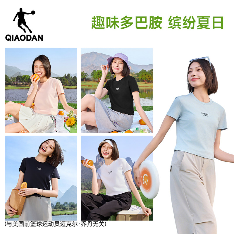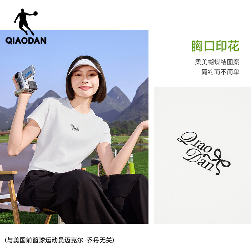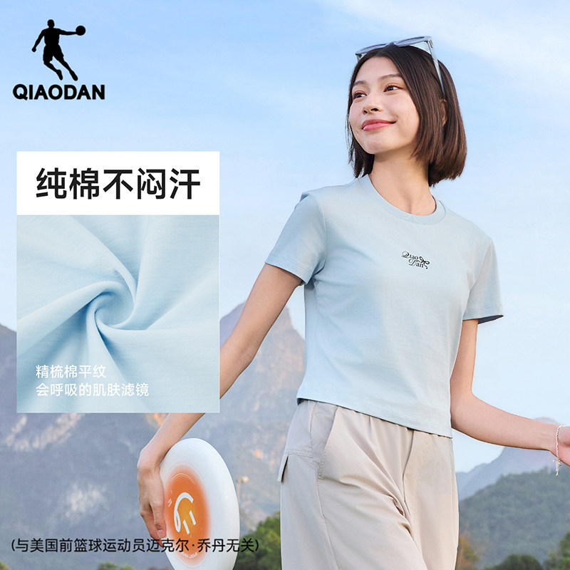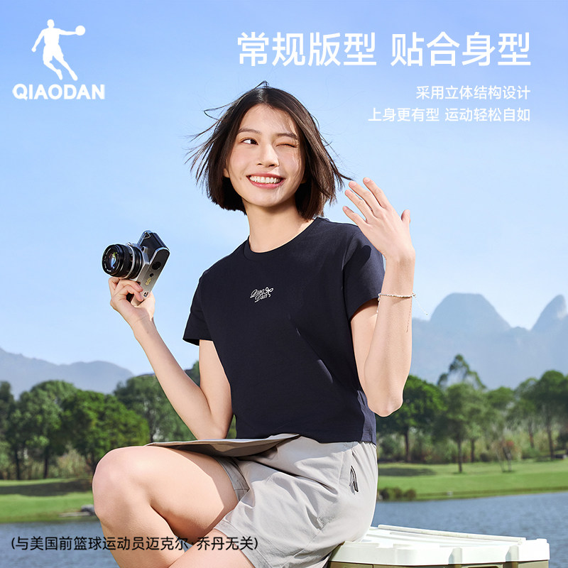 乔丹纯棉短袖T恤女士2026夏季新款透气宽松休闲时尚百搭运动上衣