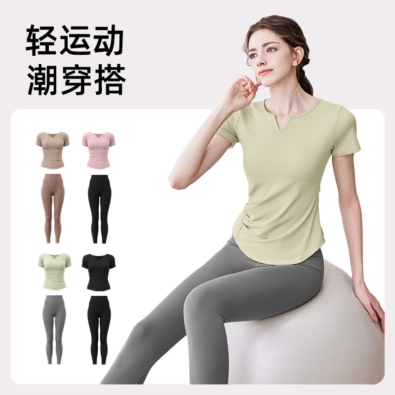 瑜伽服女上衣2026新款秋季带胸垫短袖专业跑步运动普拉提健身套装
