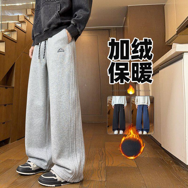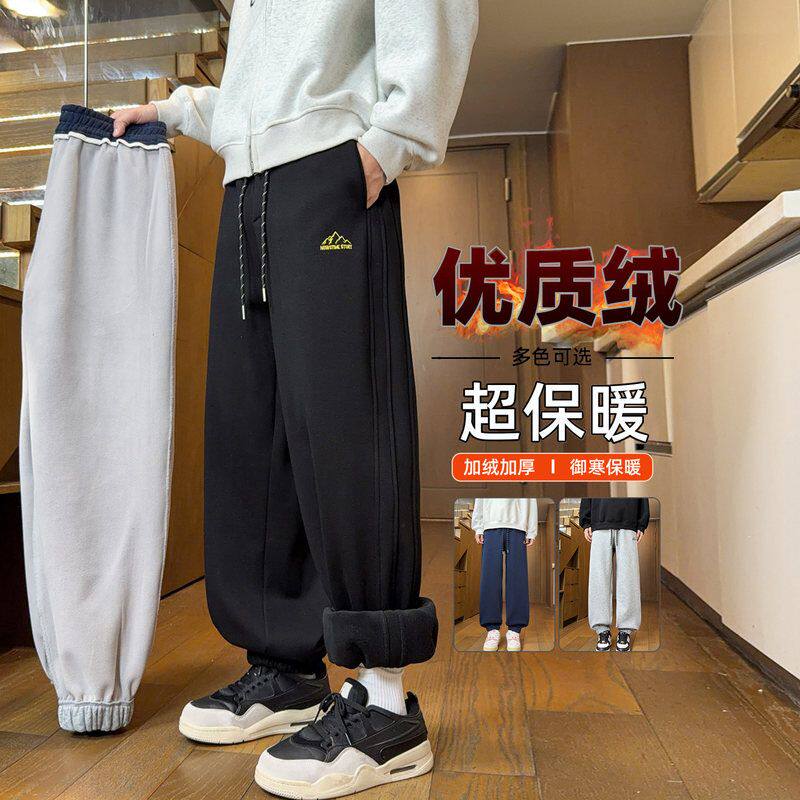 秋冬季加绒长裤子男孩初中学生青少年帅气束脚裤大童加厚休闲卫裤