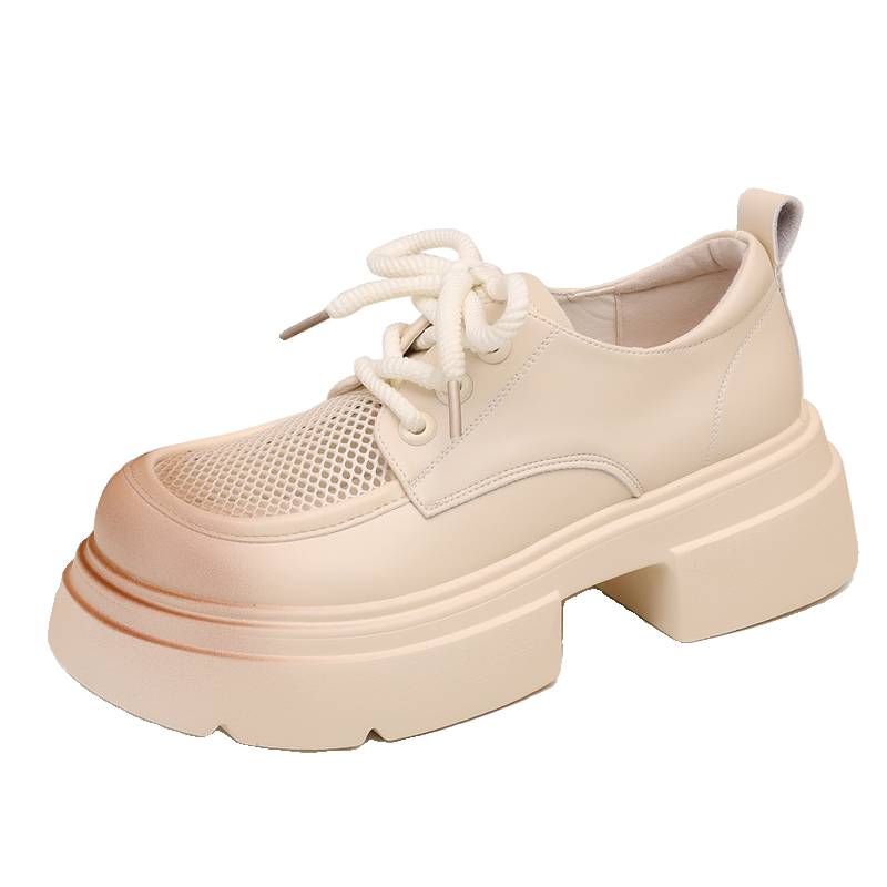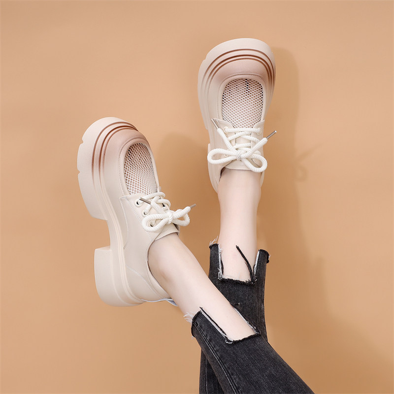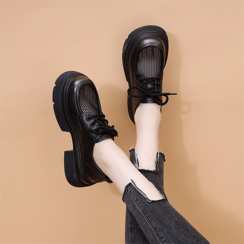 欧货网面镂空小皮鞋女2025春夏季英伦风配裙子透气厚底增高乐福鞋