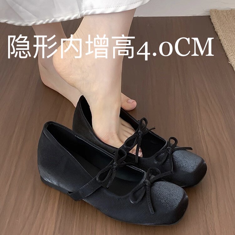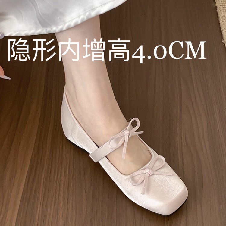 羊皮版~仙女风配裙子内增高芭蕾单鞋女白色蝴蝶结平底玛丽珍鞋子