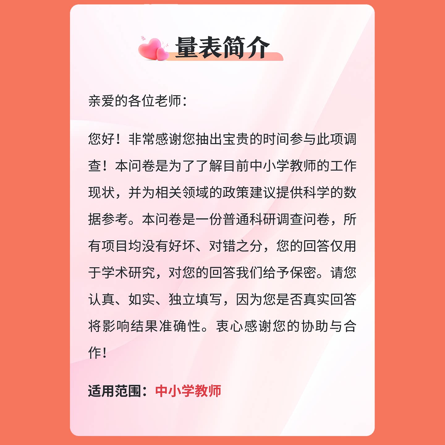 中小学教师从业状况调查问卷智能在线心理测评系统工具快速测试表