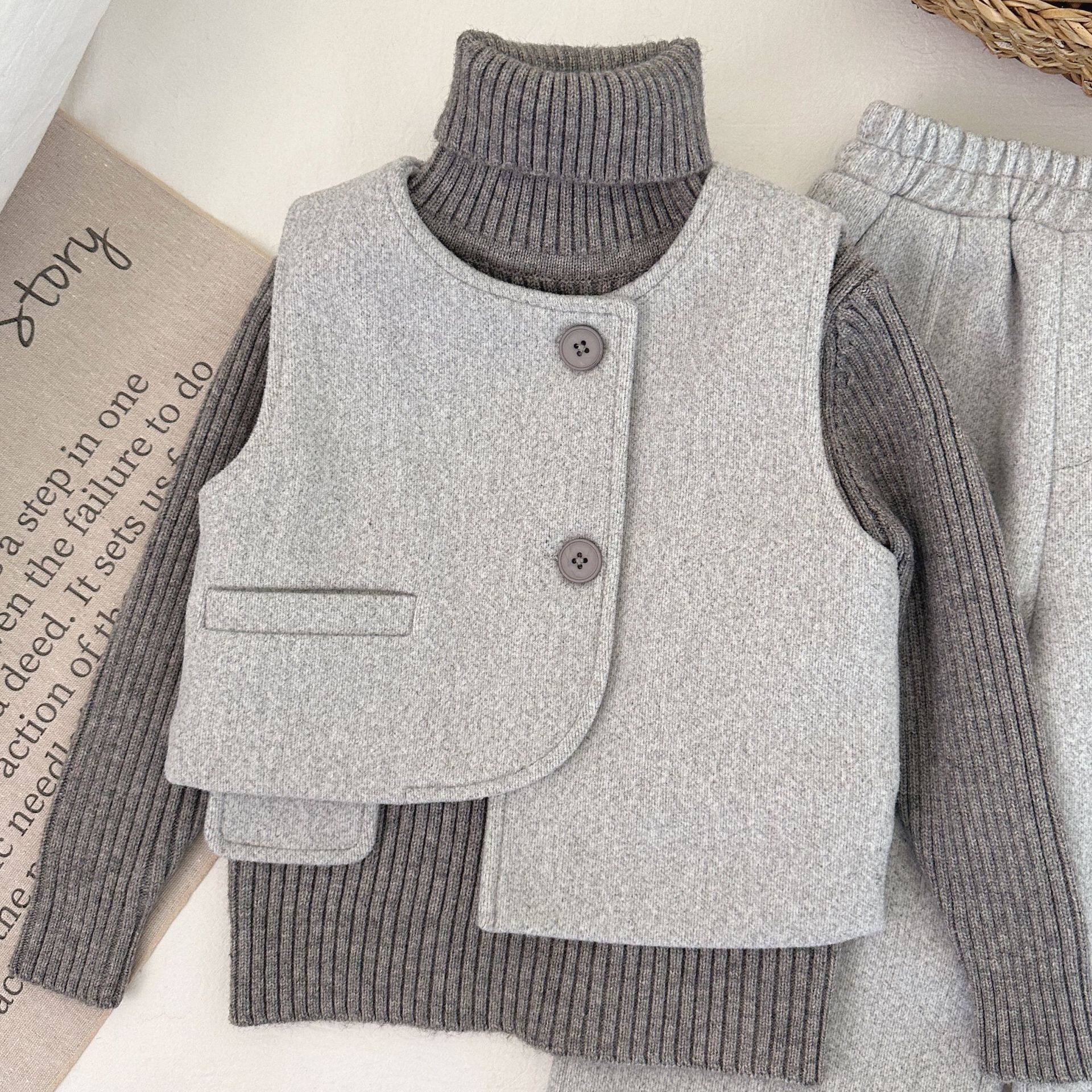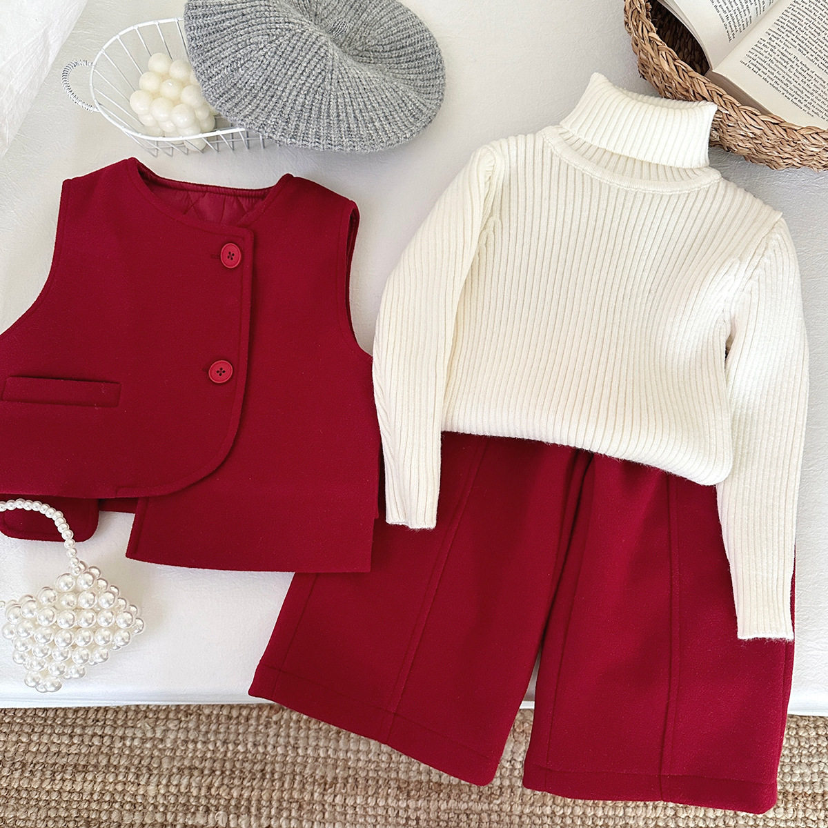 女童小香风漂亮高级红色马甲裤子两件套2026冬季新款韩版宝宝套装