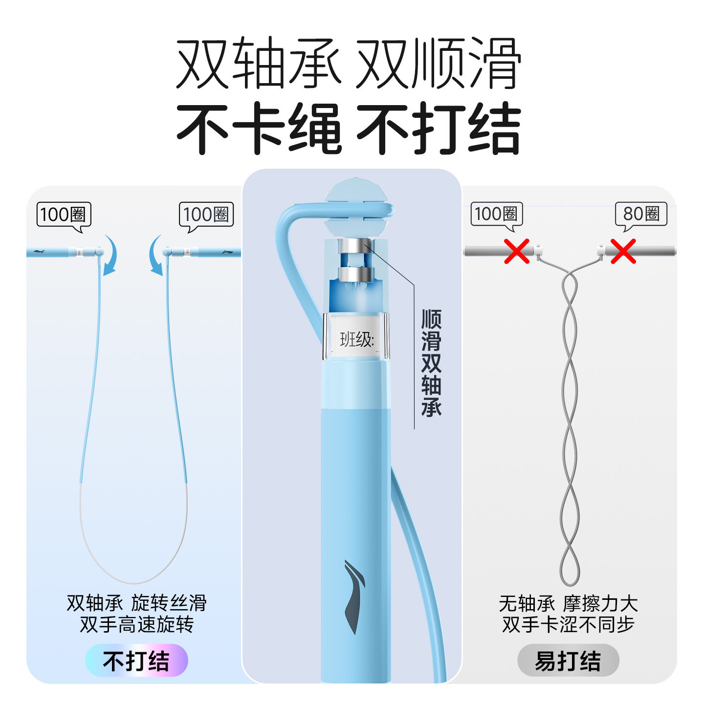李宁跳绳小学生专用考试一年级幼儿园初学双轴承竞速不打结跳神