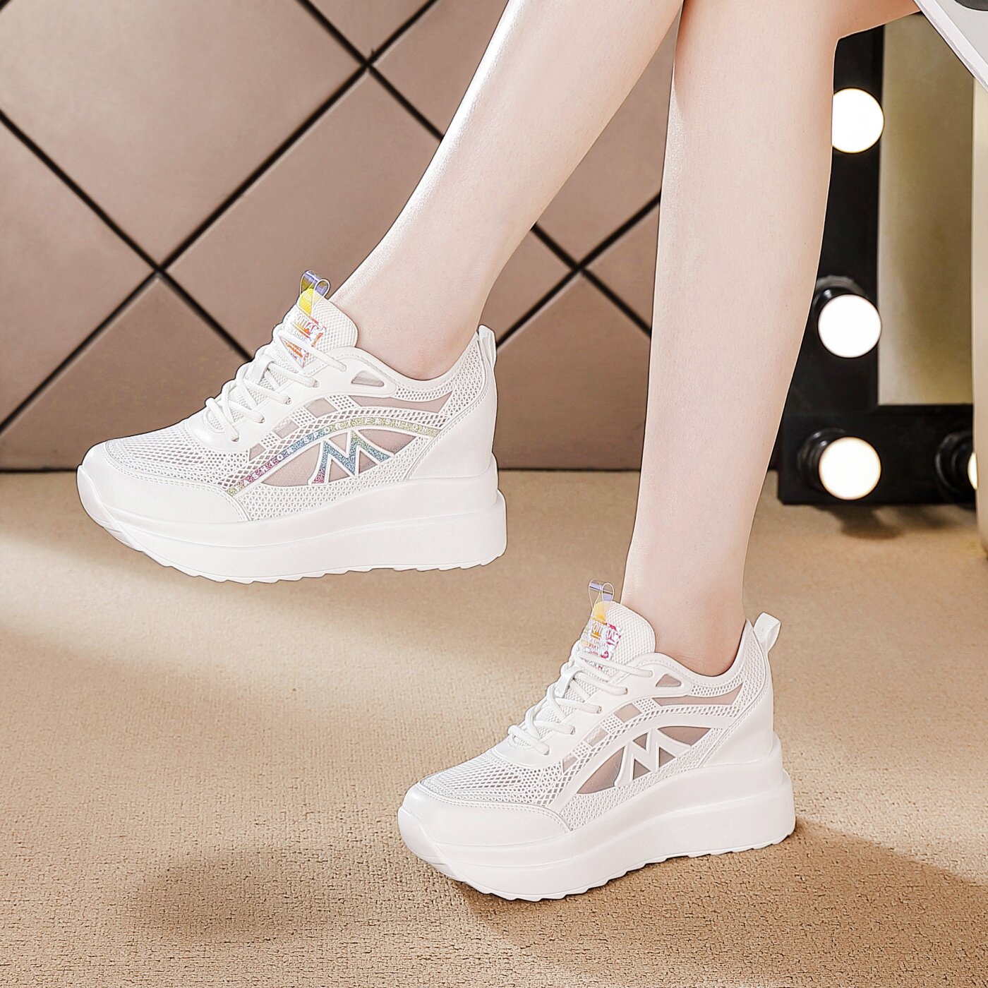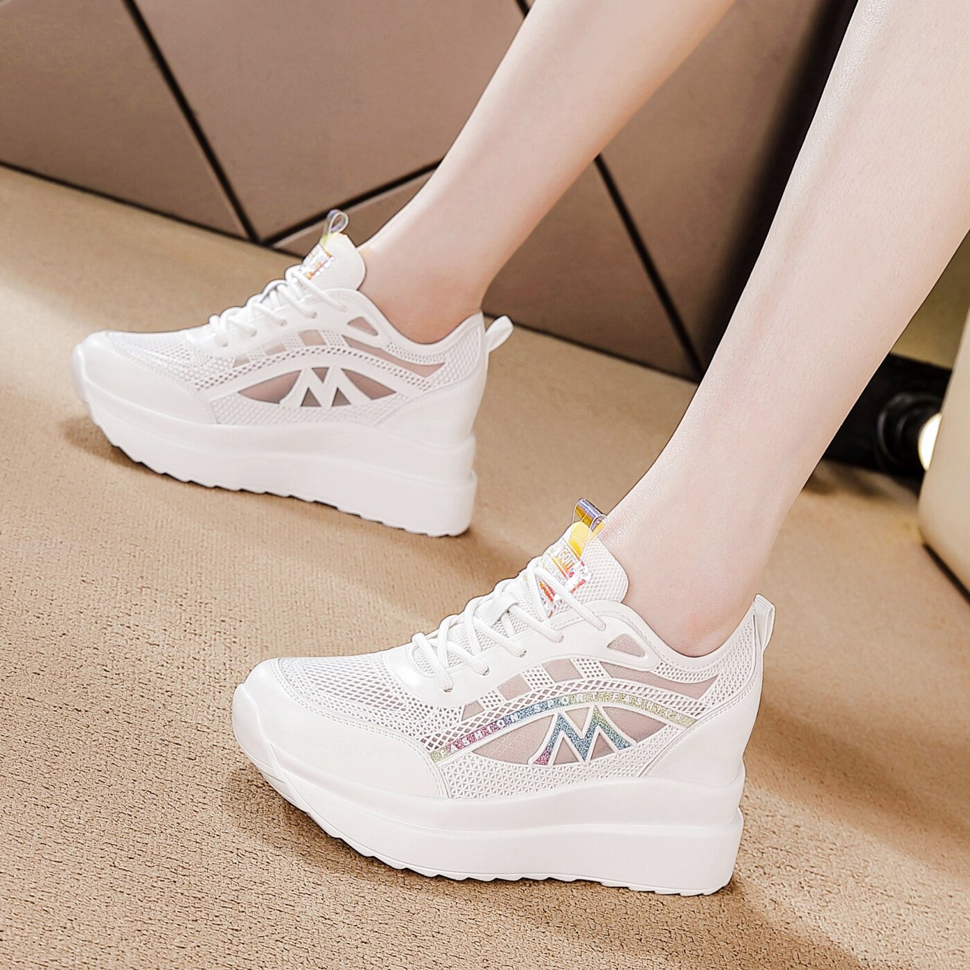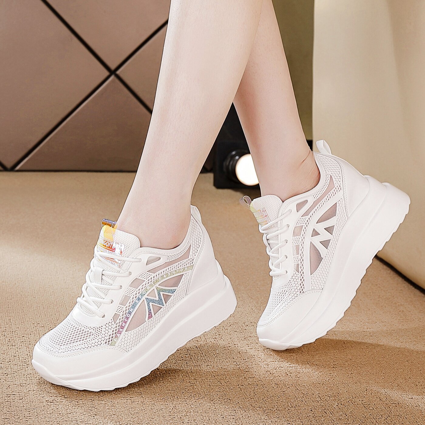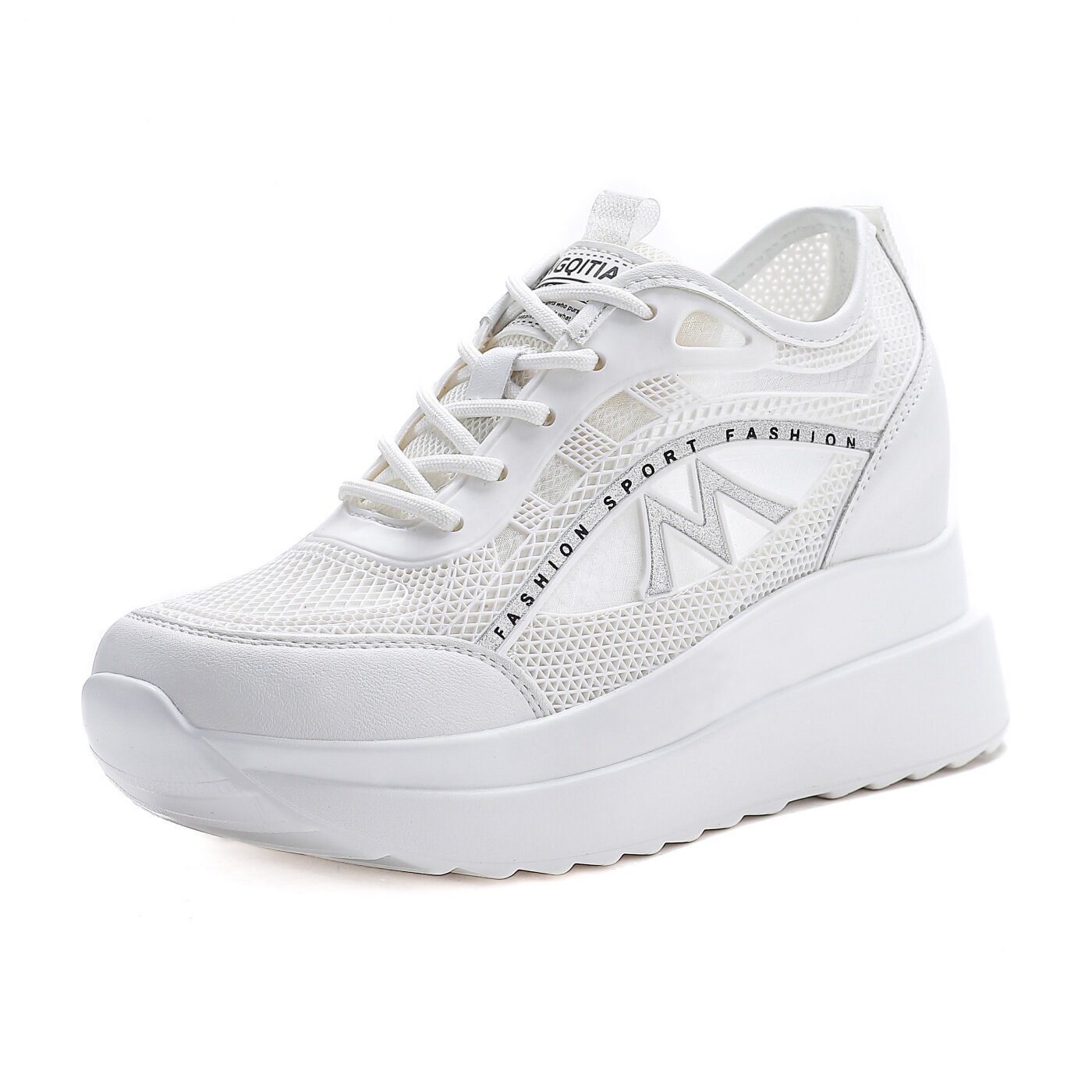 厚底内增高女鞋春夏季2026新款松糕鞋网面透气时尚百搭小白鞋运动