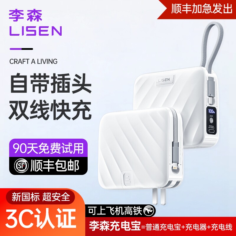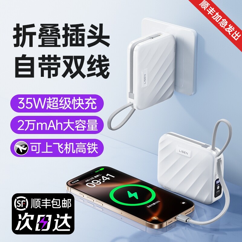 311线报网描述:自带折叠插头 自带双线快充 小巧便携