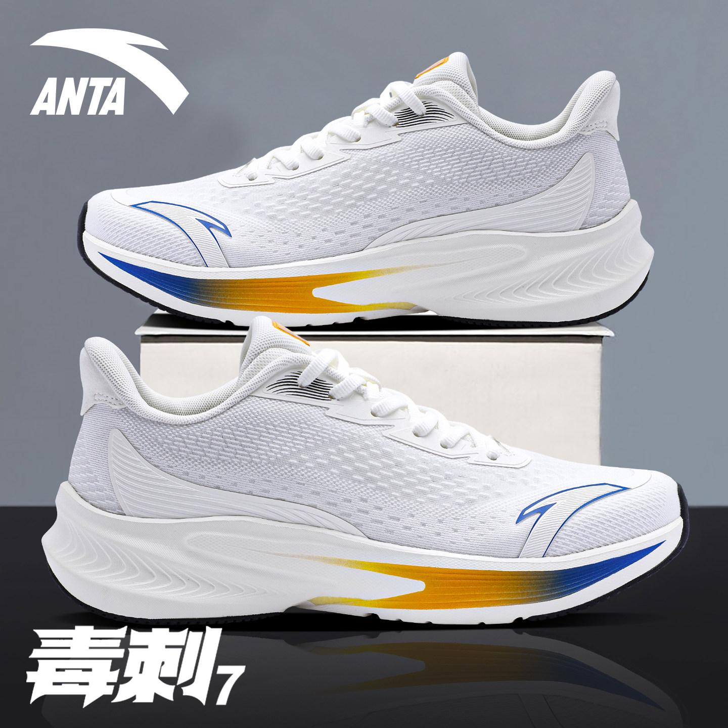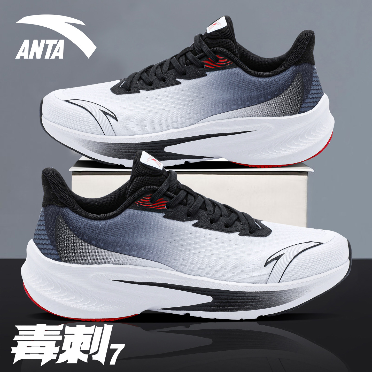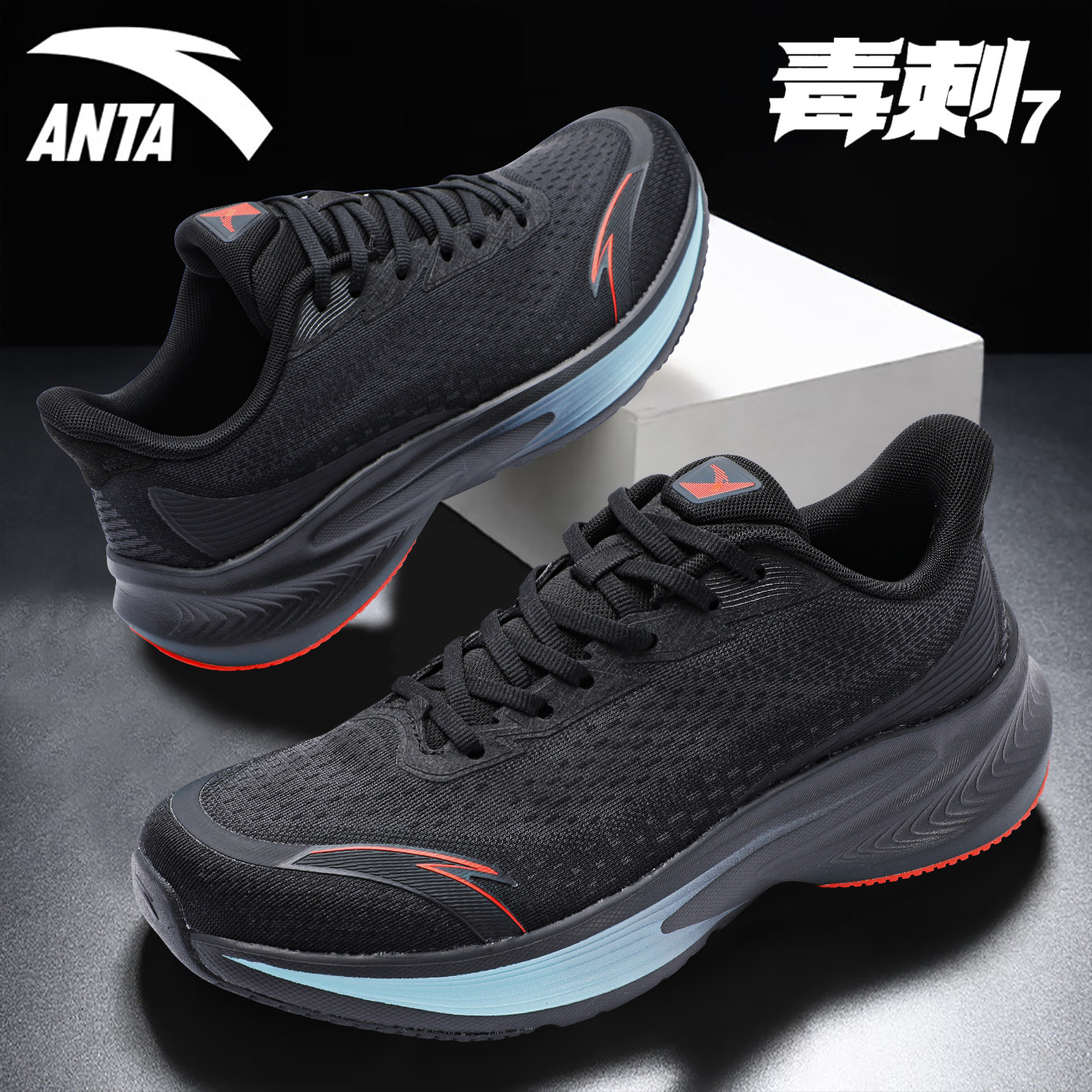 安踏男鞋毒刺7跑步鞋春季新款官方旗舰正品黑色减震回弹运动鞋男