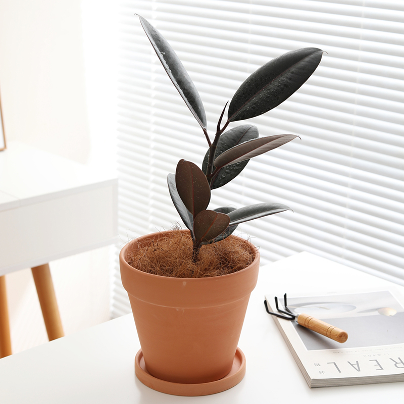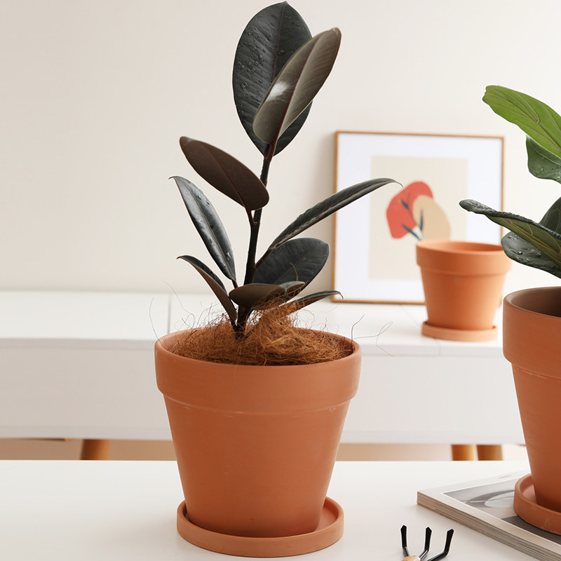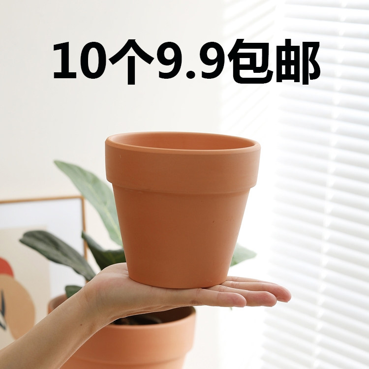 清仓高圆形红陶花盆带托盘透气简约粗陶土多肉绿植种植盆大号包邮
